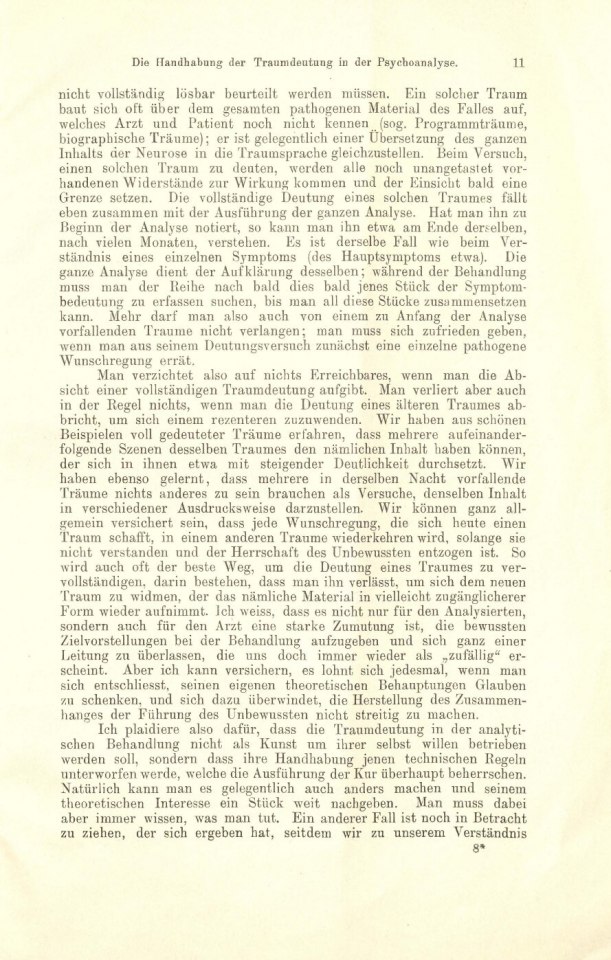 die Traumdeutung jedesmal voll auszunützen und dem Patienten alles