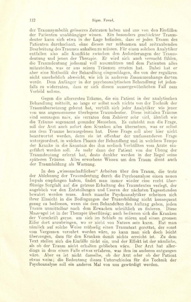 zu Gunsten des Interesses an der Traumdeutung hintangesetzt werden.Wie soll man es also mit der Traumdeutung in der Analyse halten,