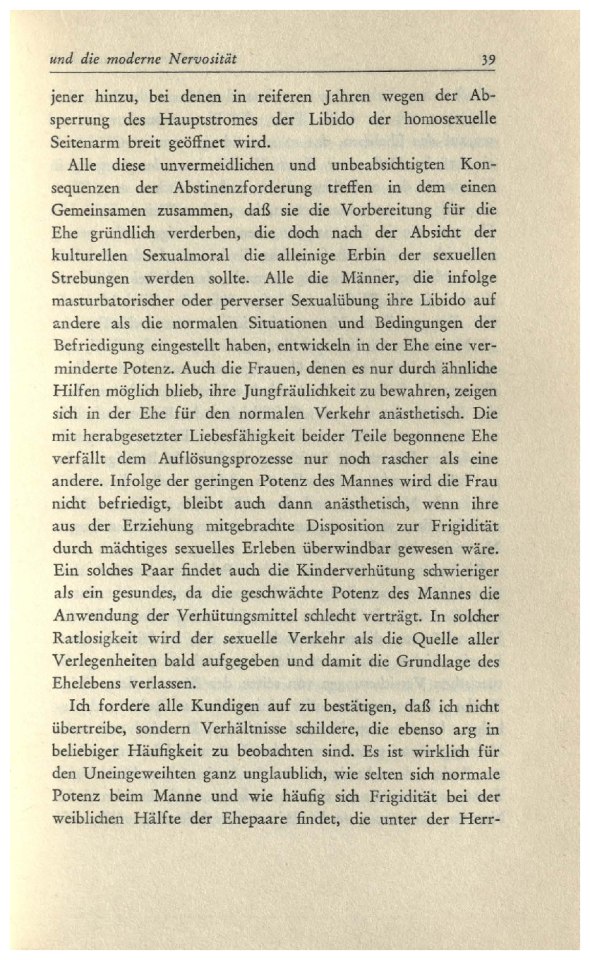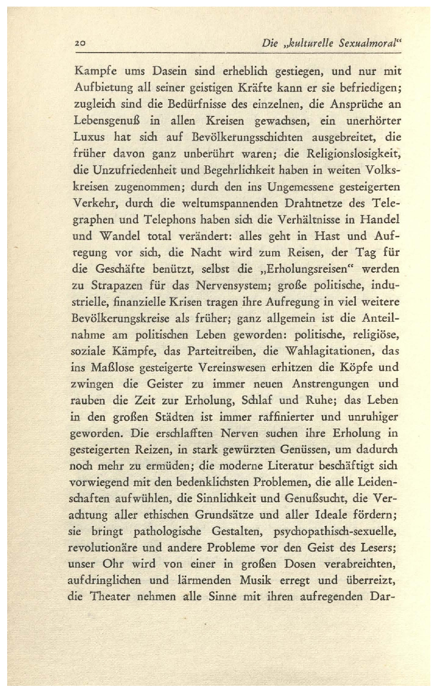 gegenwärtigen Gesellschaft sich rasch ausbreitenden Nervosität.2) Sexualethik, S. 32 ff.