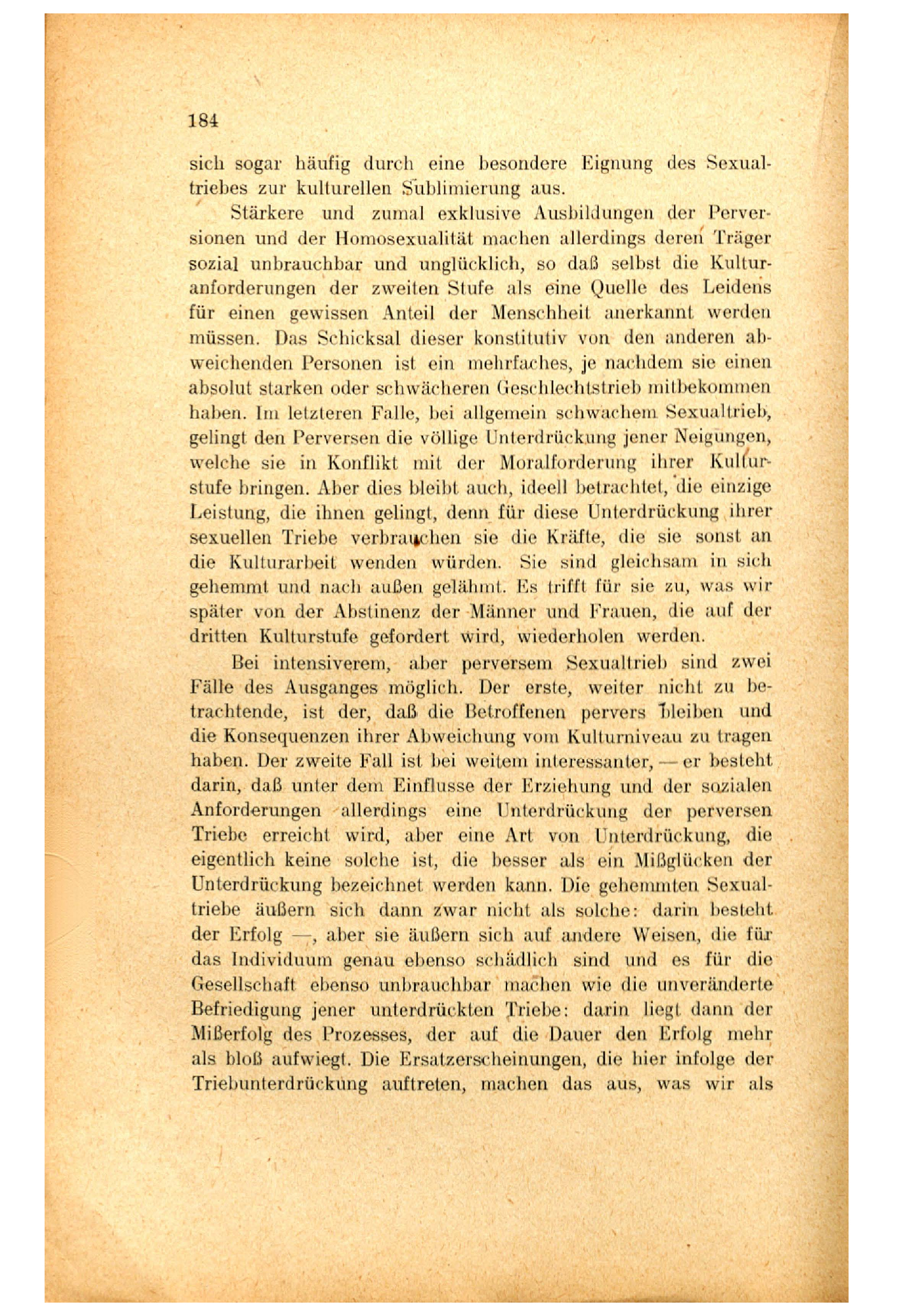 sperrung des Hauptstromes der Libido der homosexuelle Seiten-arm breit geöffnet wird.