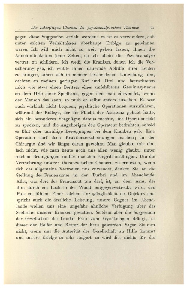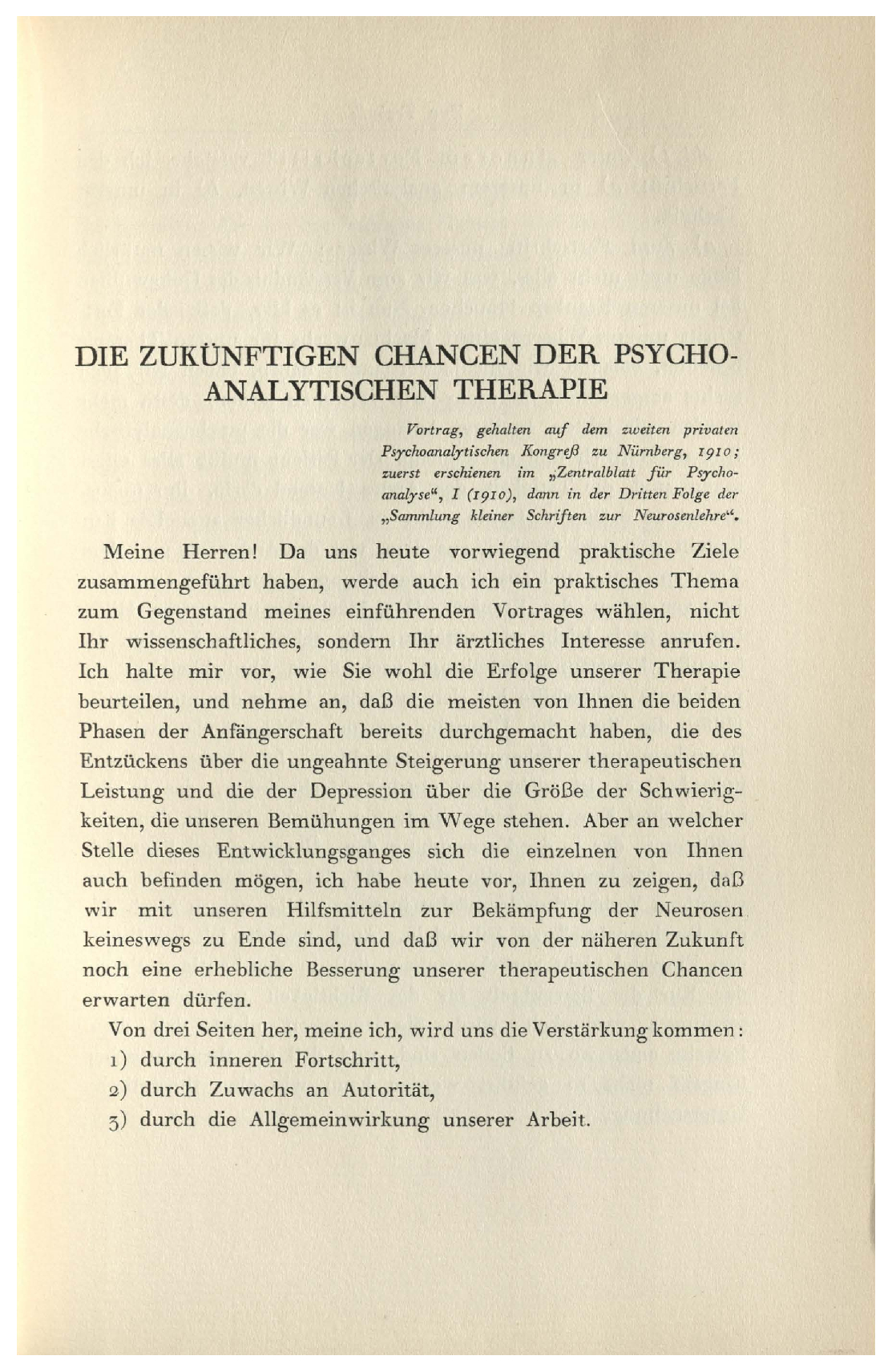 Die zukünftigen Chancen der psychoanalytischen Therapie 1910-006/1925