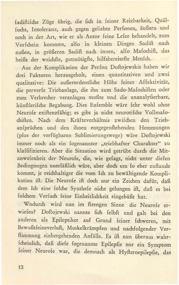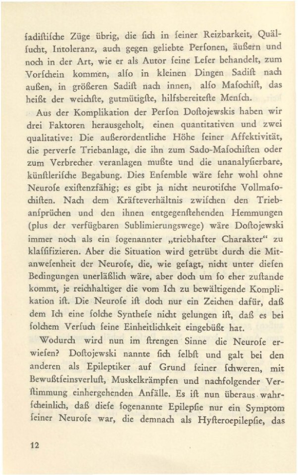 sicht, daß der sehr starke Destruktionstrieb Dostojewskis, der