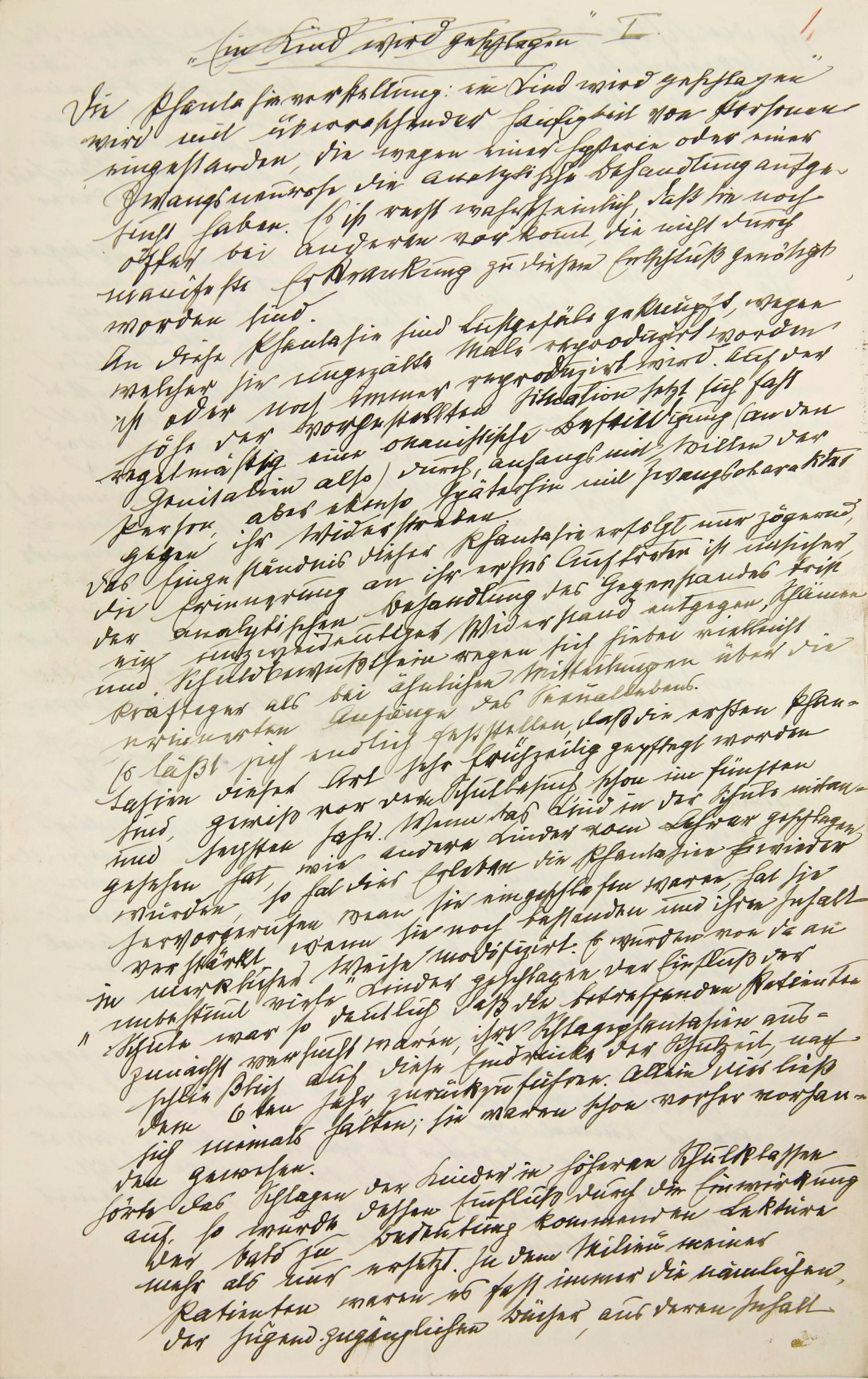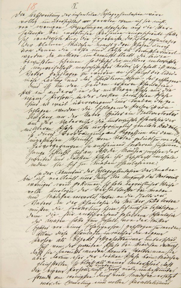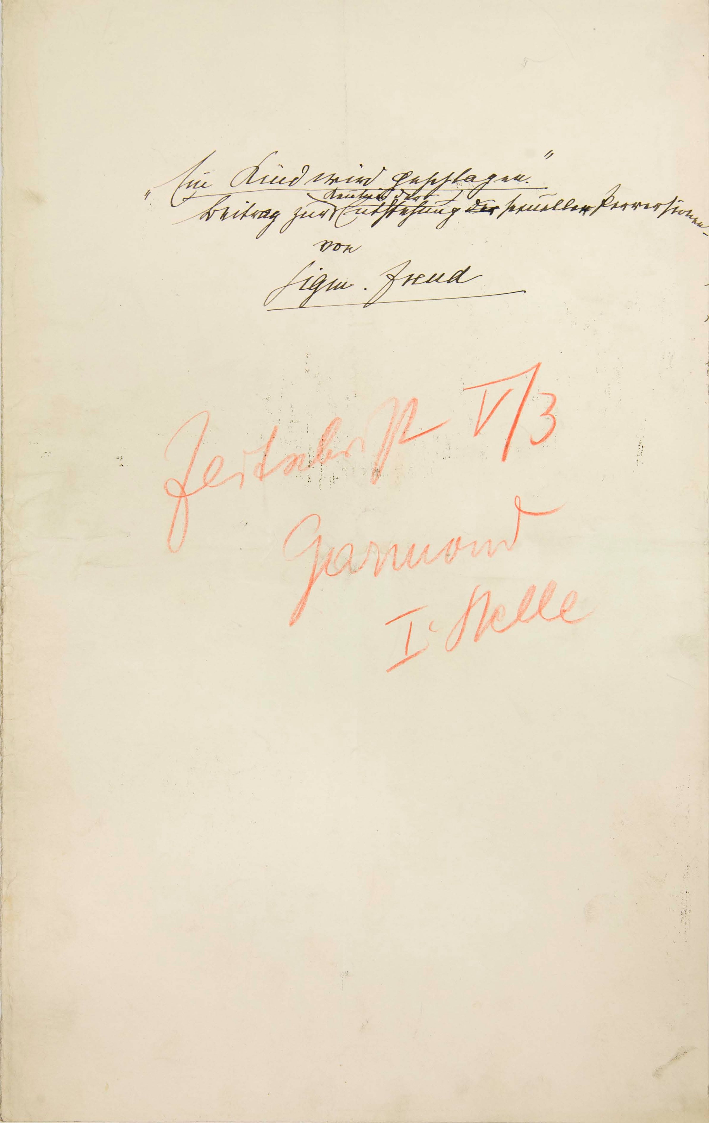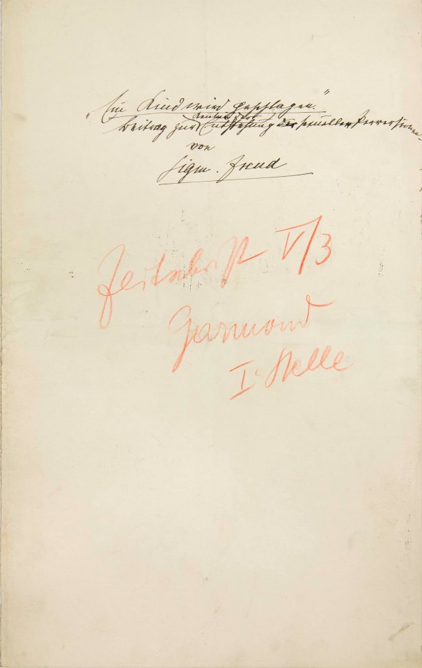 Sigmund Freud Papers: Oversize, 1859-1985; Writings; 1919; "Ein Kind wird geschlagen, Beitrag zur Kenntnis der Entstehung sexueller Perversionen" [e], holograph manuscript