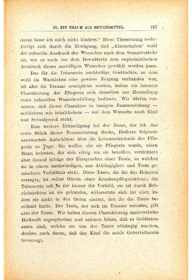 Psychoanalyse, zu verleugnen. ⑥Kehren wir nun zum Traume der Pflegerin zurück, um