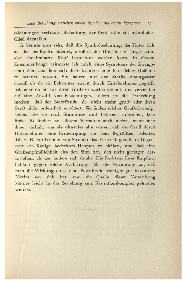 Motivs vor sich hat, und die Quelle dieser Verstirkungkónnte leicht in der Beziehung zum Kastrationskomplex gefunden