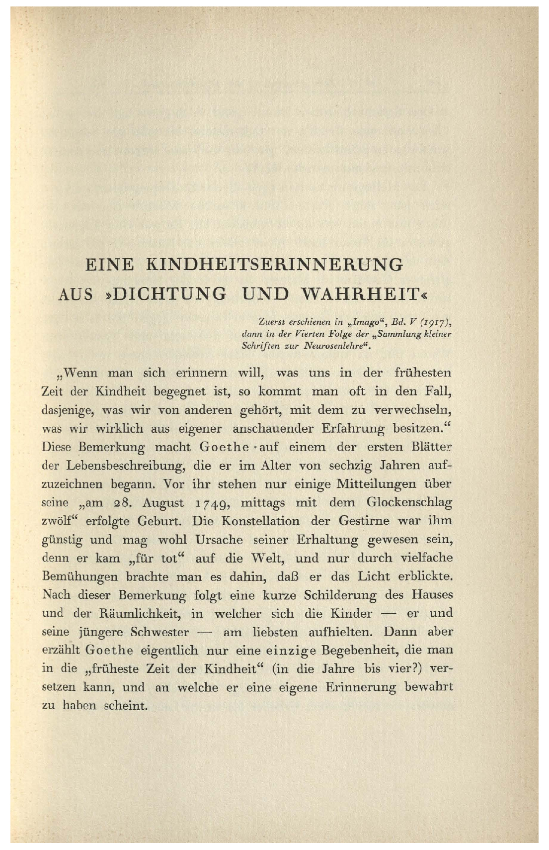 AUS »DICHTUNG UND WAHRHEIT«Zuerst erschienen in „Imago“, Bd. V (1917),