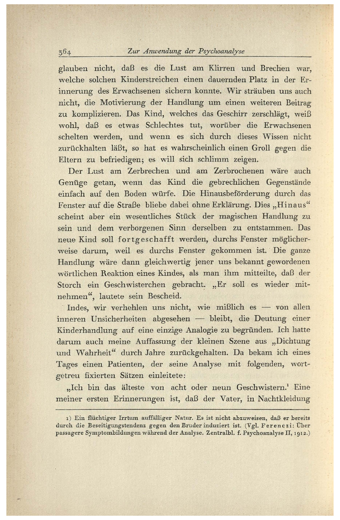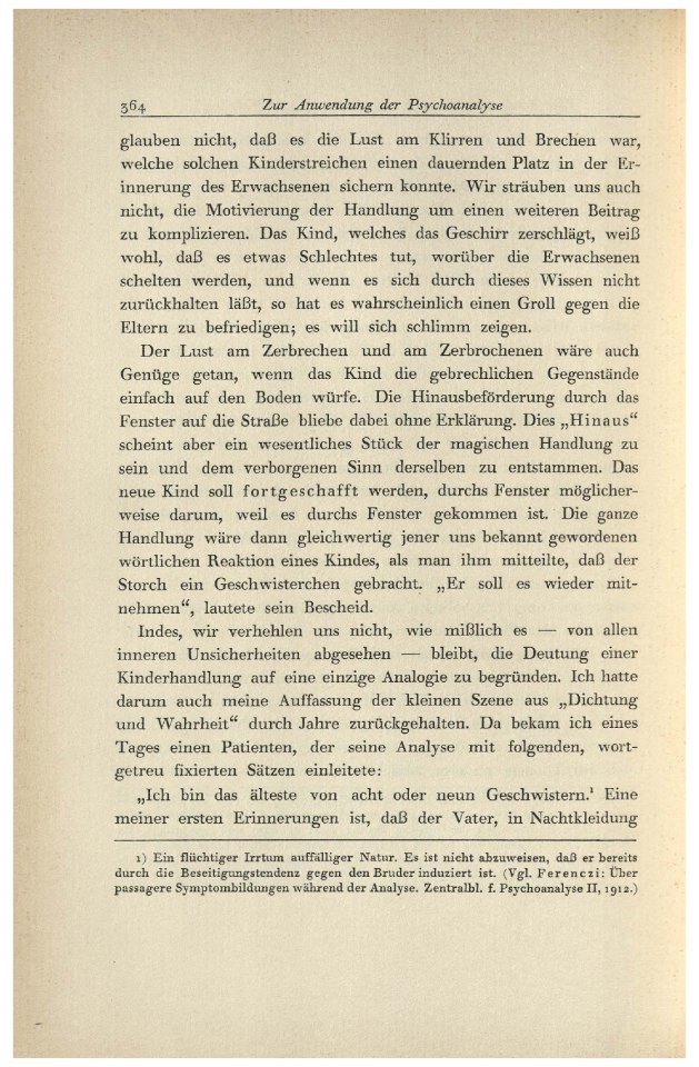 sie zu erfüllen. Wir verstehen, daß das zweijährige Kind darum1) Dieser den wesentlichen Punkt der Mitteilung als Widerstand annagende