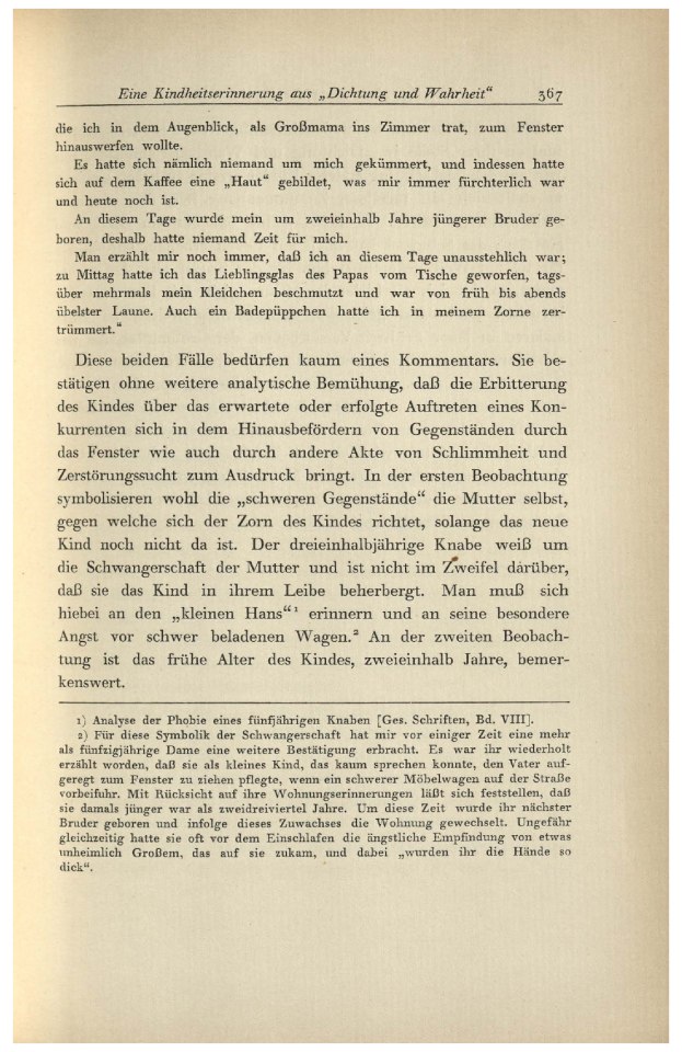 Eine Kindheitserinnerung aus „Dichtung und Wahrheit“ 367