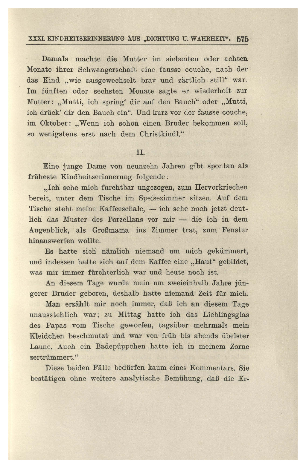 XXXI, KINDHEITSERINNERUNG AUS „DICHTUNG U. WAHRHEIT“, 575