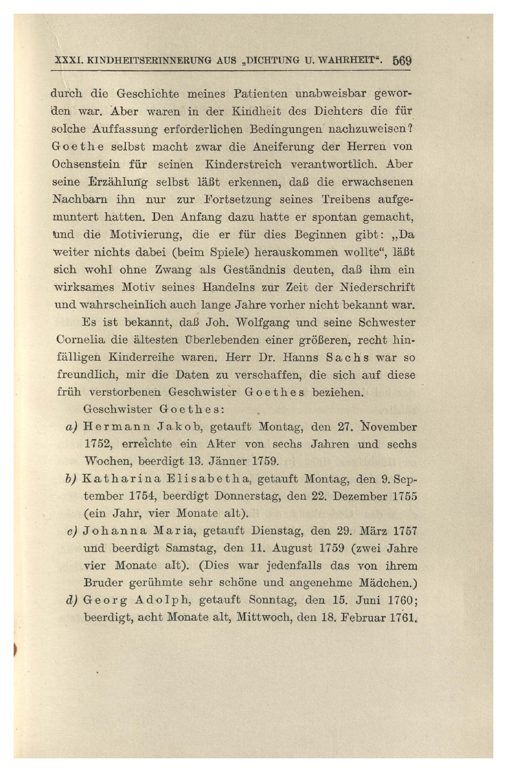 XXXI. KINDHEITSERINNERUNG AUS „DICHTUNG U. WAHRHEIT“. 577