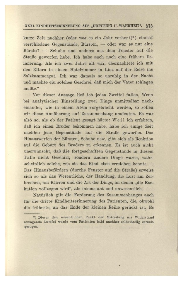 an welche er eine eigene Erinnerung bewahrt zu haben scheint.*) Imago V, 1917,