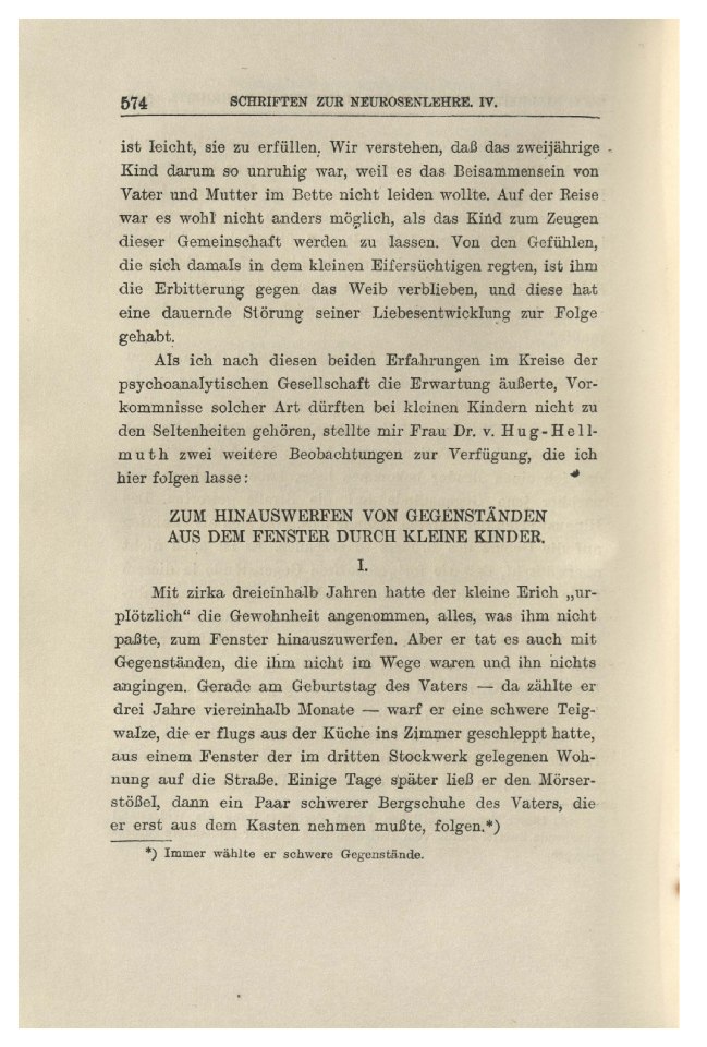 früheste Kindheitserinnerung folgende:„Ich sehe mich furchtbar ungezogen, zum Hervorkriechen