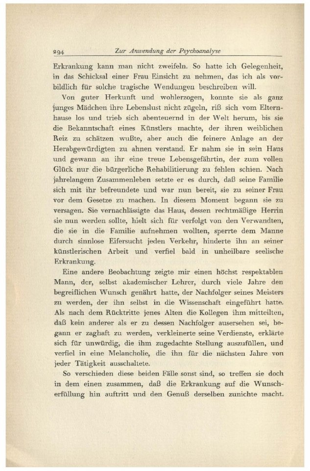So verschieden diese beiden Fälle sonst sind, so treffen sie doch in dem einen zusammen, daß die Erkrankung auf die Wunscherfüllung hin auftritt und den Genuß derselben zunichte macht.