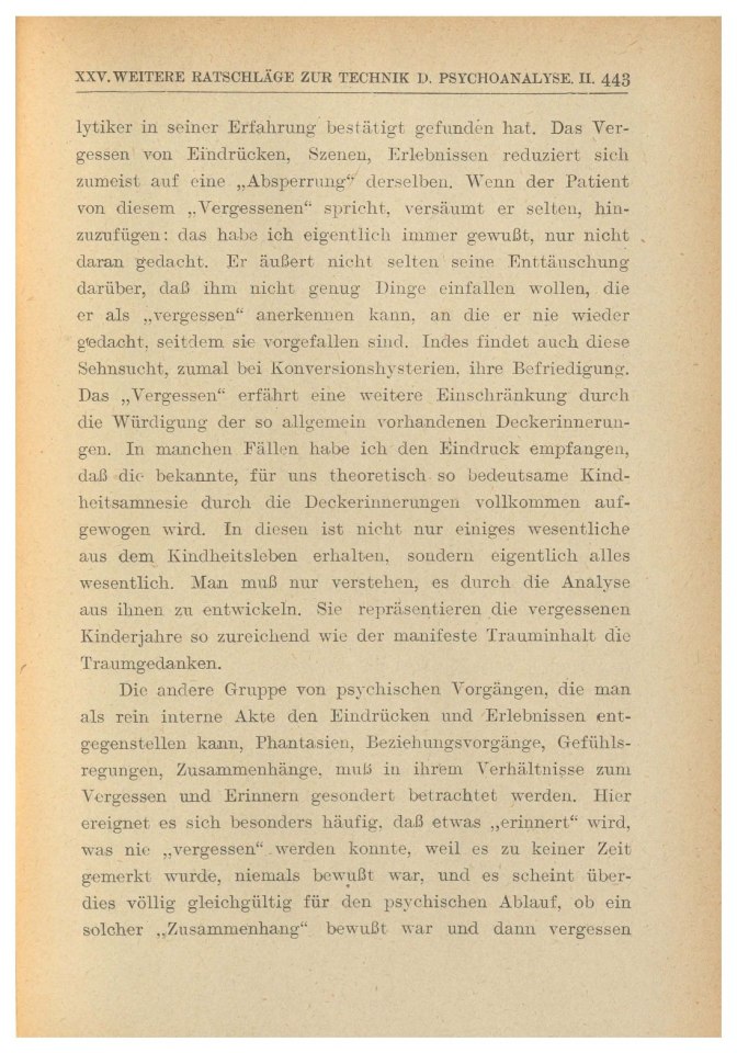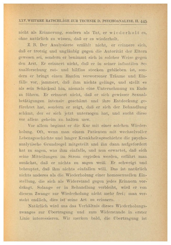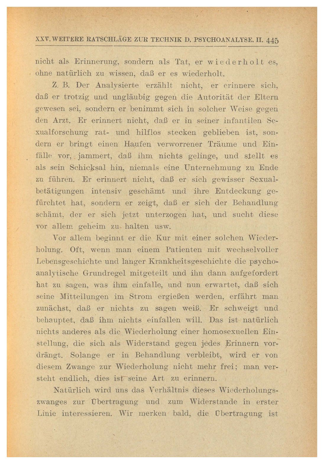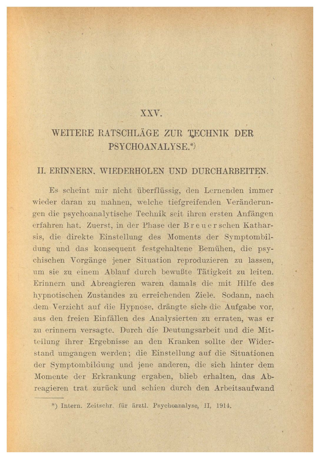 PSYCHOANALYSE.*)II. ERINNERN, WIEDERHOLEN UND DURCHARBEITEN.