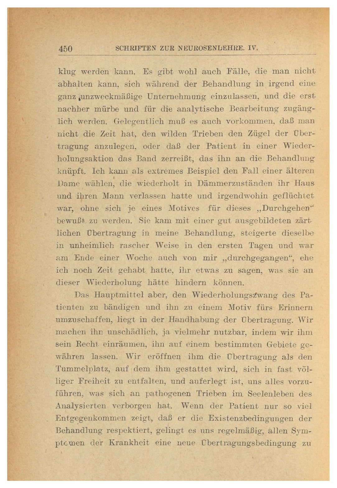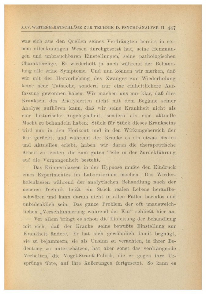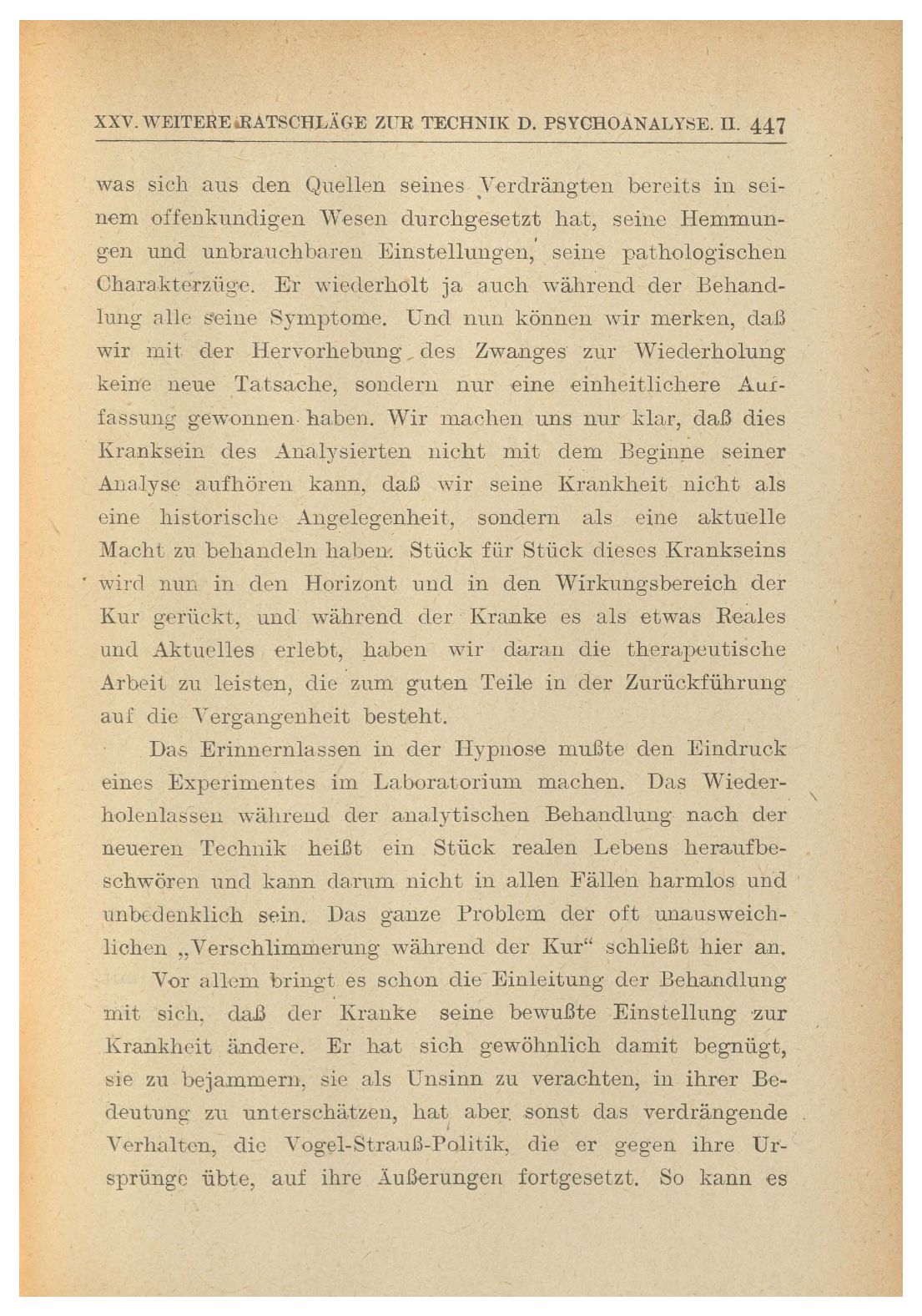 dieser Wiederholung hätte hindern können.Das Hauptmittel aber, den Wiederholungszwang des Pa-