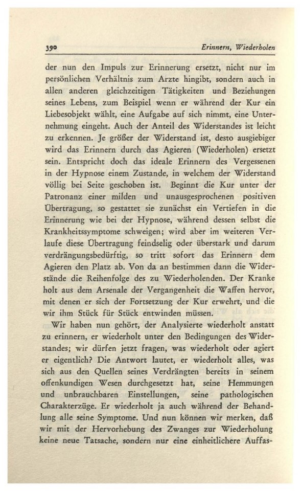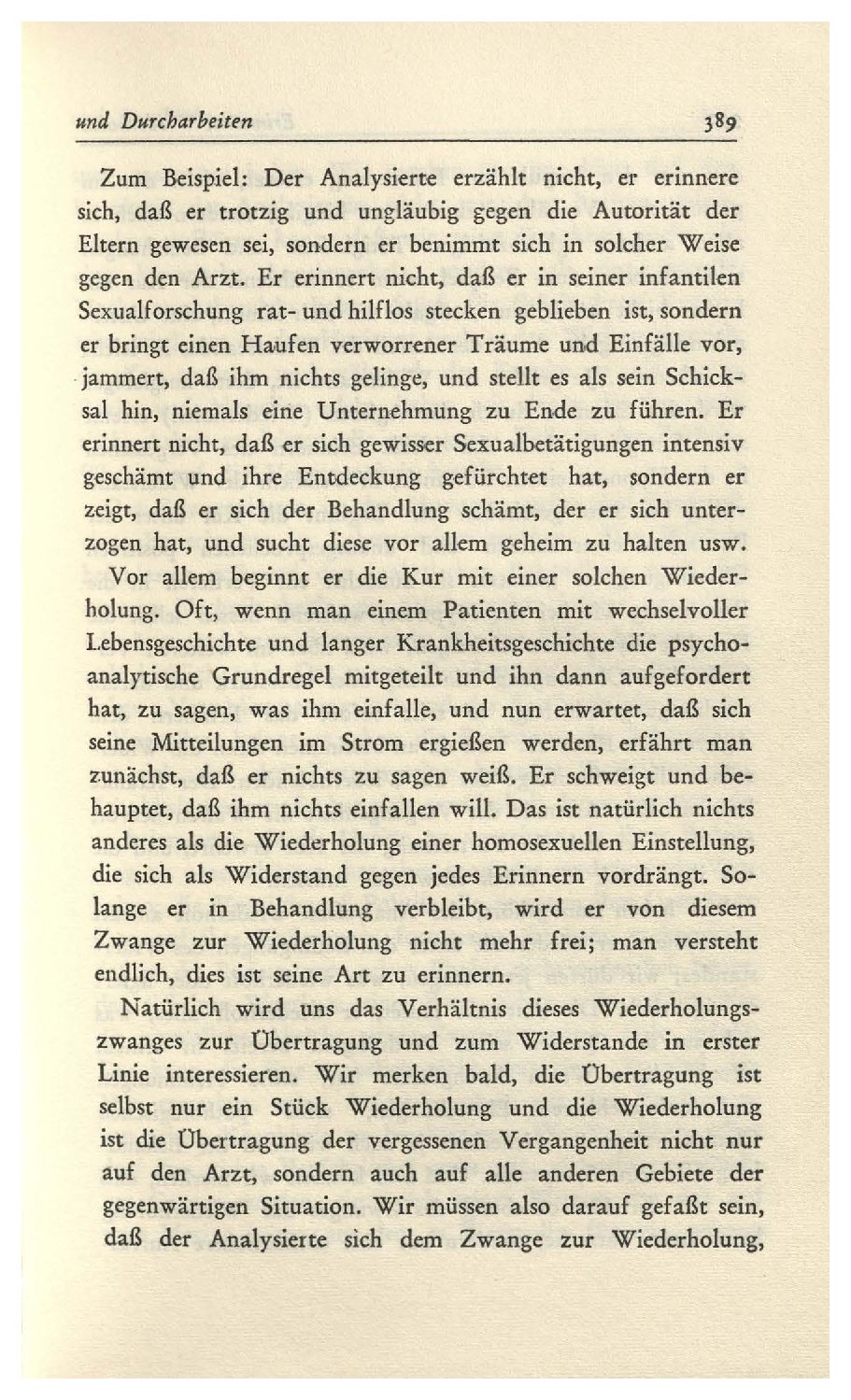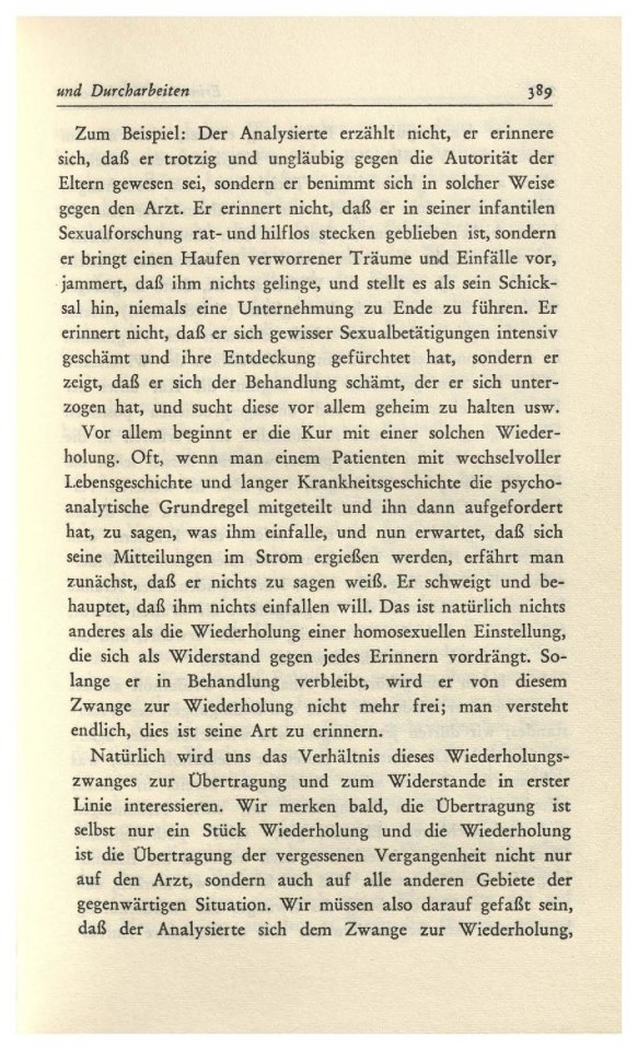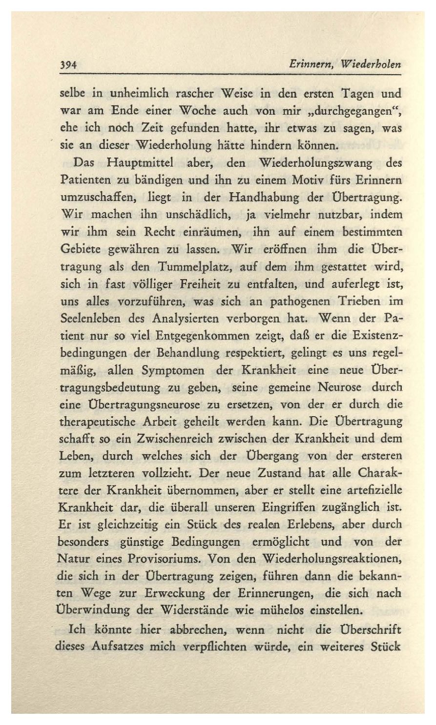 sie an dieser Wiederholung hätte hindern können.Das Hauptmittel aber, den Wiederholungszwang des