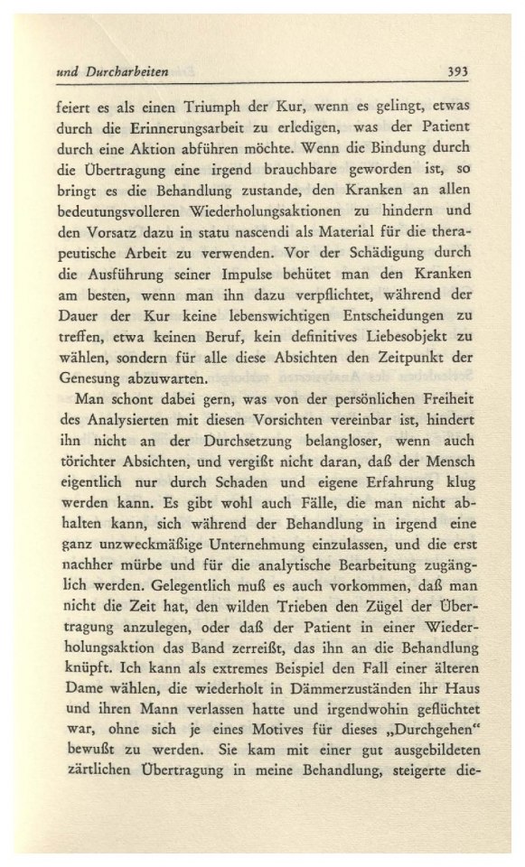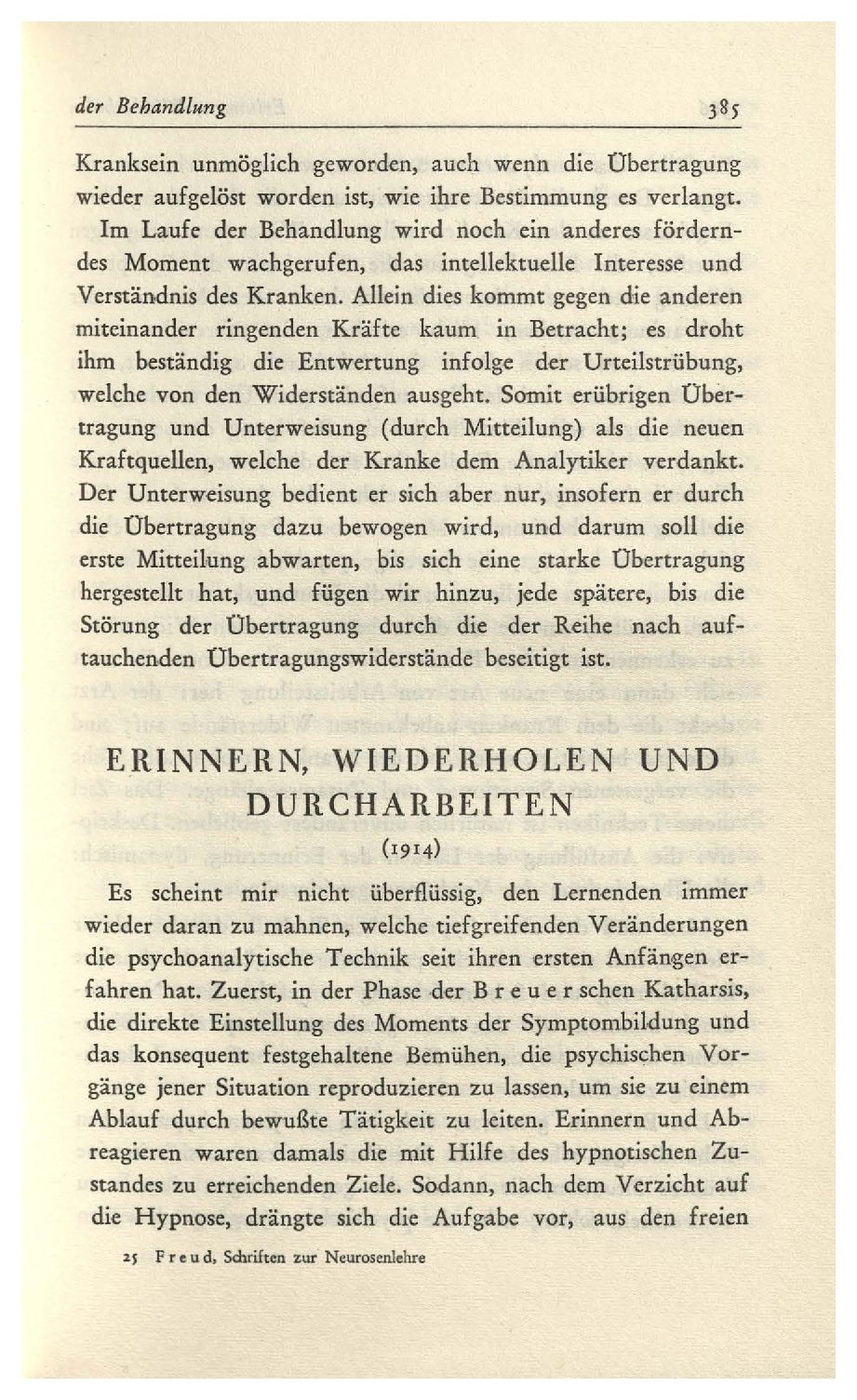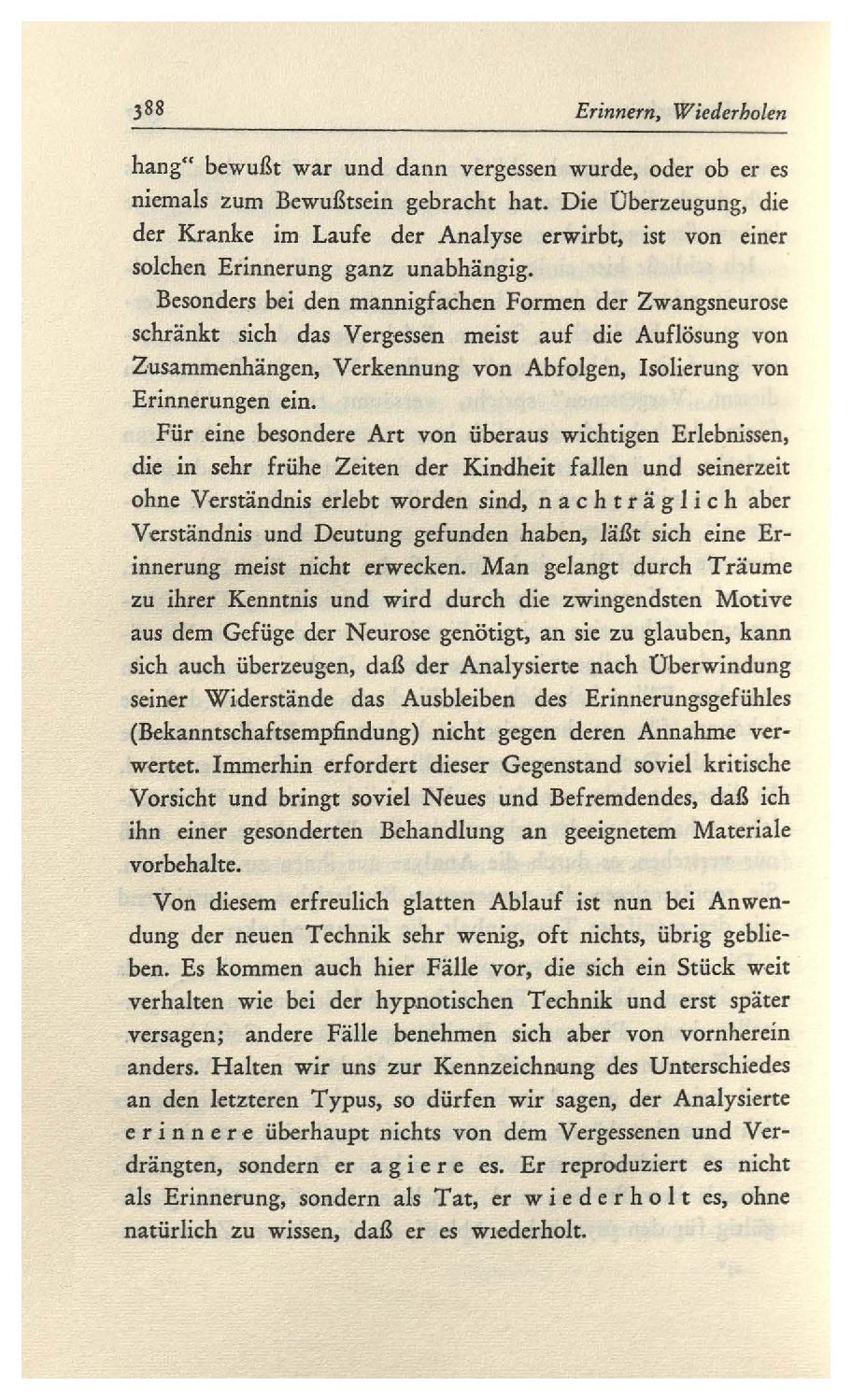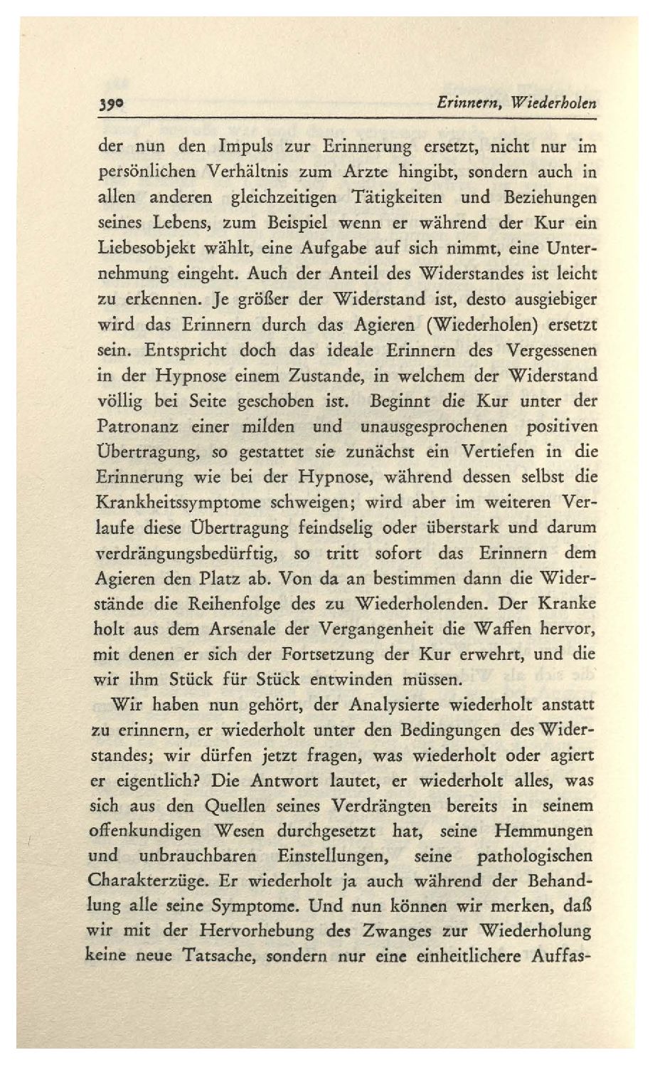 sie an dieser Wiederholung hätte hindern können.Das Hauptmittel aber, den Wiederholungszwang des