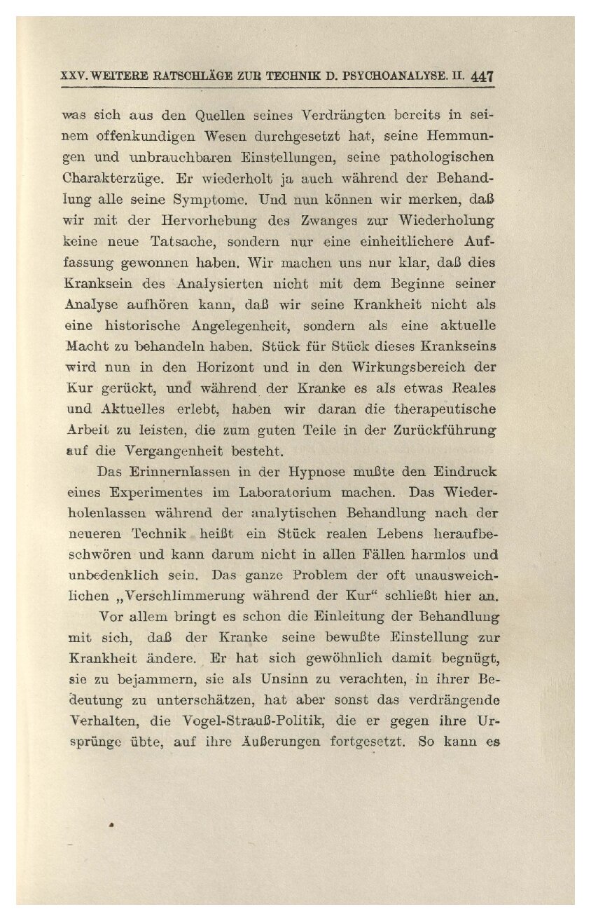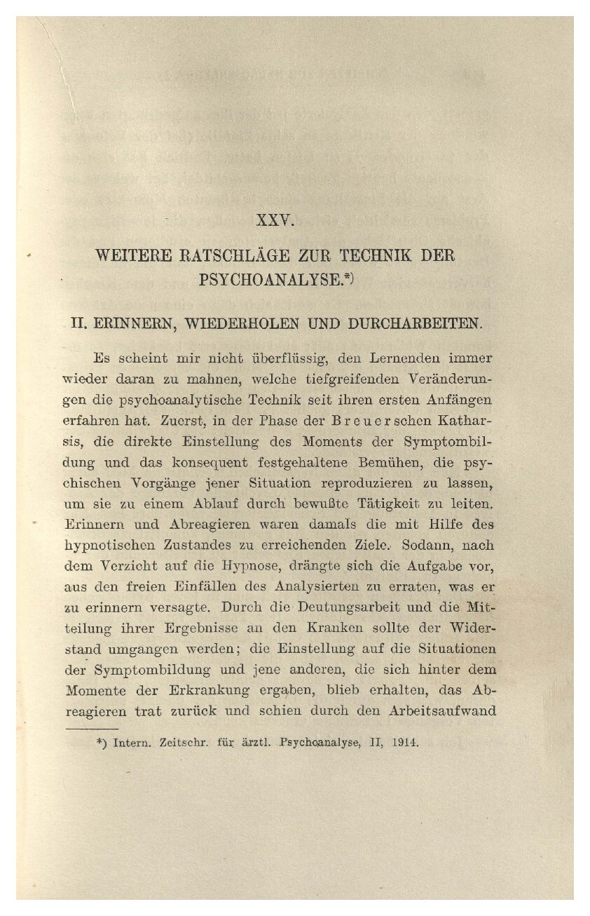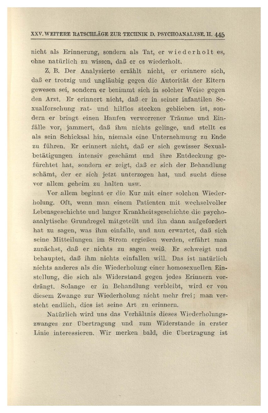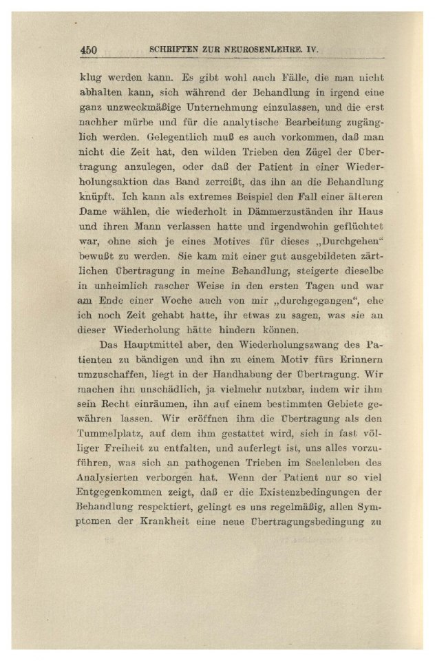 Das Hauptmittel aber, den Wiederholungszwang des Pa-