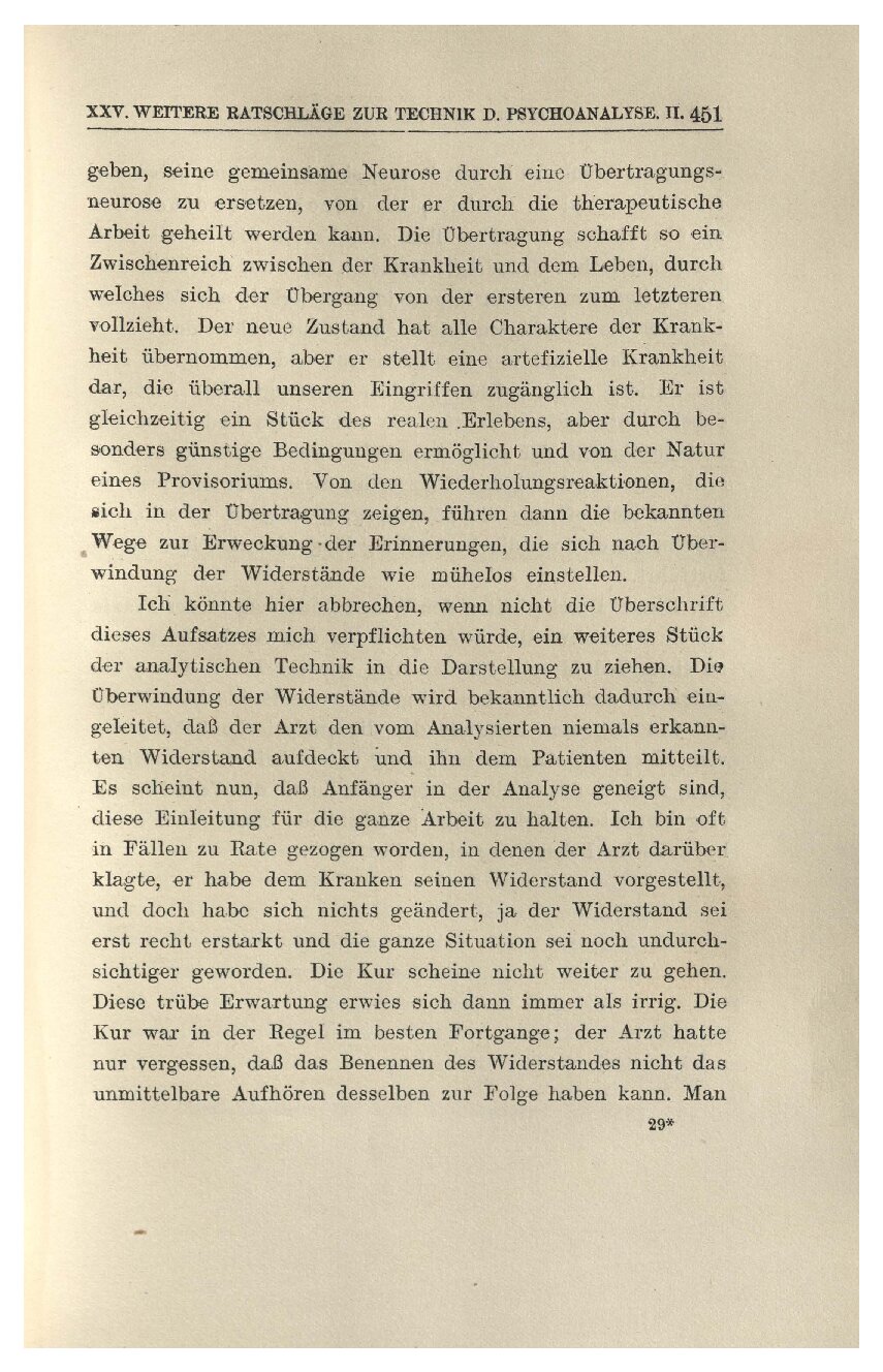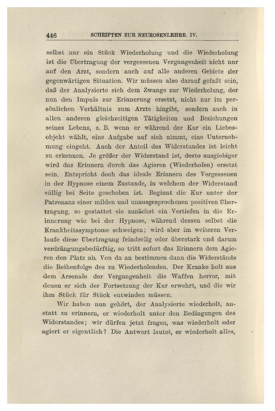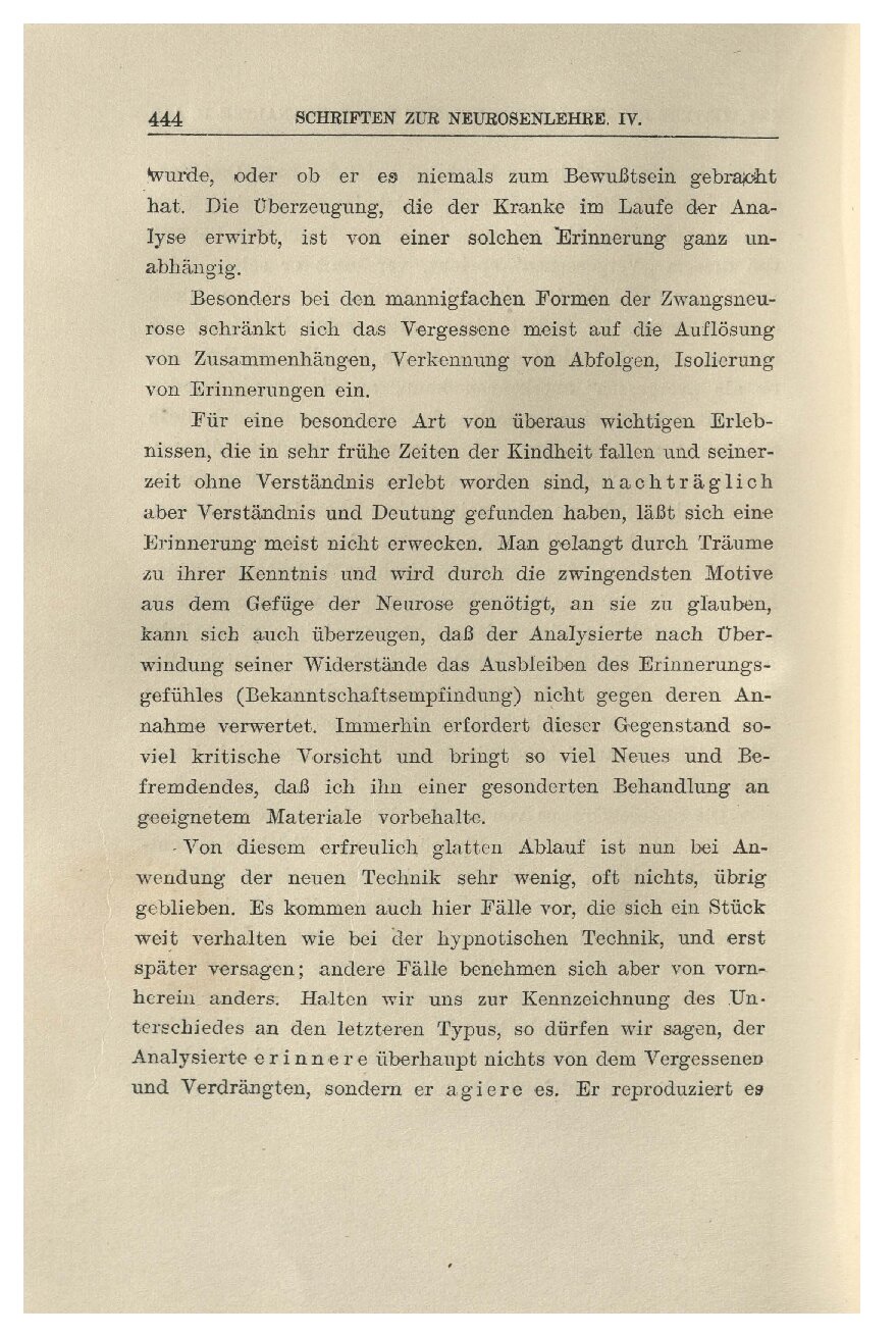 Das Hauptmittel aber, den Wiederholungszwang des Pa-