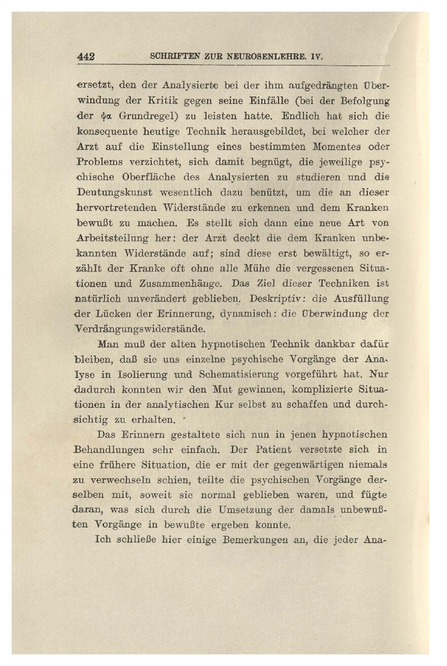 gen die psychoanalytische Technik seit ihren ersten Anfängen