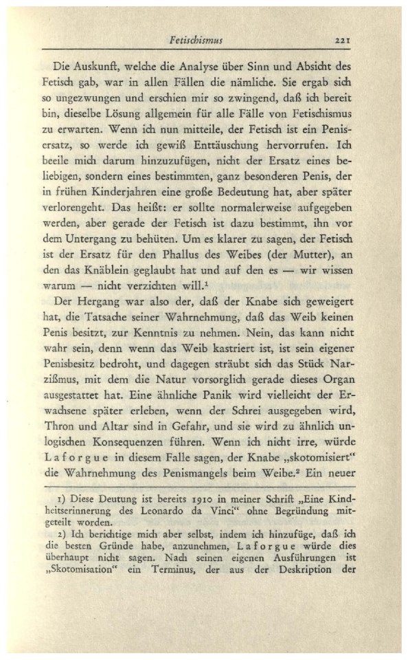 Wenn ich zur Beschreibung des Fetischismus zurückkehre,