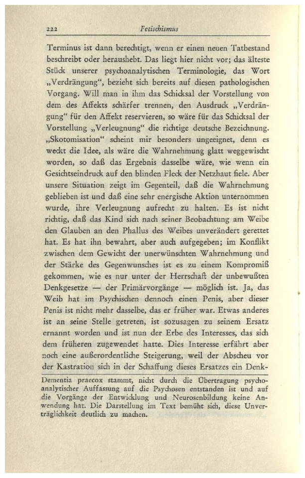 leugnet worden, ähnlich wie beim Fetischisten die unliebsame