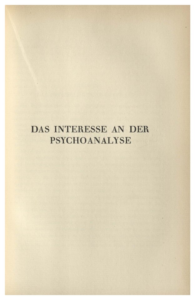 Freud, Sigmund | 1913-011/1924 | 1913j | 10486 | Das Interesse an der Psychoanalyse | GS 4 | 311–343 | Fertig ✔ | Fertig ✔ | Ganz fertig / zutreffend ✔ | Fehlt ✖ | Fehlt ✖ | Ganz fertig / zutreffend ✔ | ✔ | EB | ✔ | ||