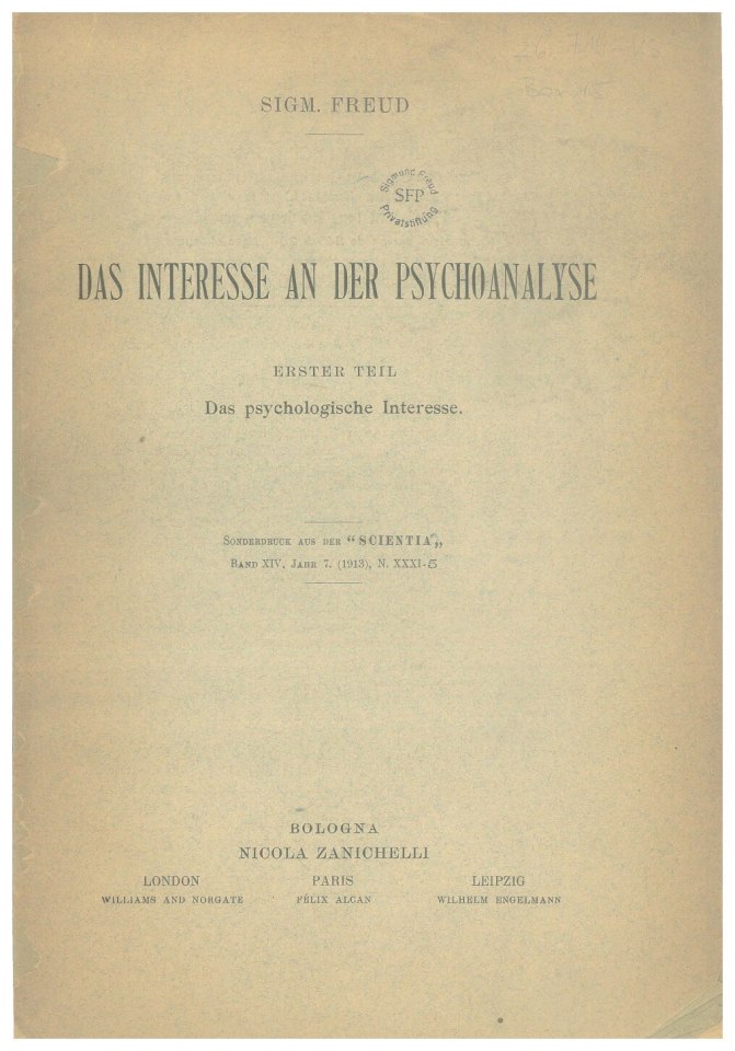 Freud, Sigmund | 1913-011/1913.2 | Das Interesse an der Psychoanalyse (1. Teil) | Separatum Scientia, 7, 1913, 14 (31) | 240–250 | Fertig ✔ | Fertig ✔ | Ganz fertig / zutreffend ✔ | Fehlt ✖ | Fehlt ✖ | Ganz fertig / zutreffend ✔ | ✔ | EB | ✔ | ||||