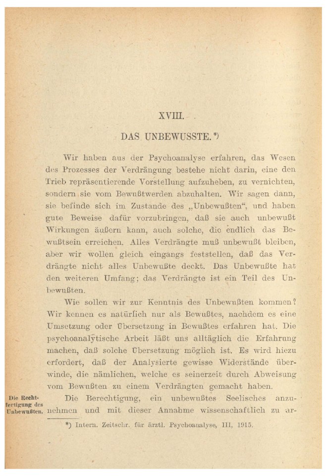 Freud, Sigmund | 1915-005/2020 | 1915-07 | Das Unbewusste | SFG 14 | 267, 269–301 | Fertig ✔ | Nicht erforderlich/ | Nicht erforderlich/ | Nicht erforderlich/ | Nicht erforderlich/ | Nicht erforderlich/ | ✔ | ✔ |