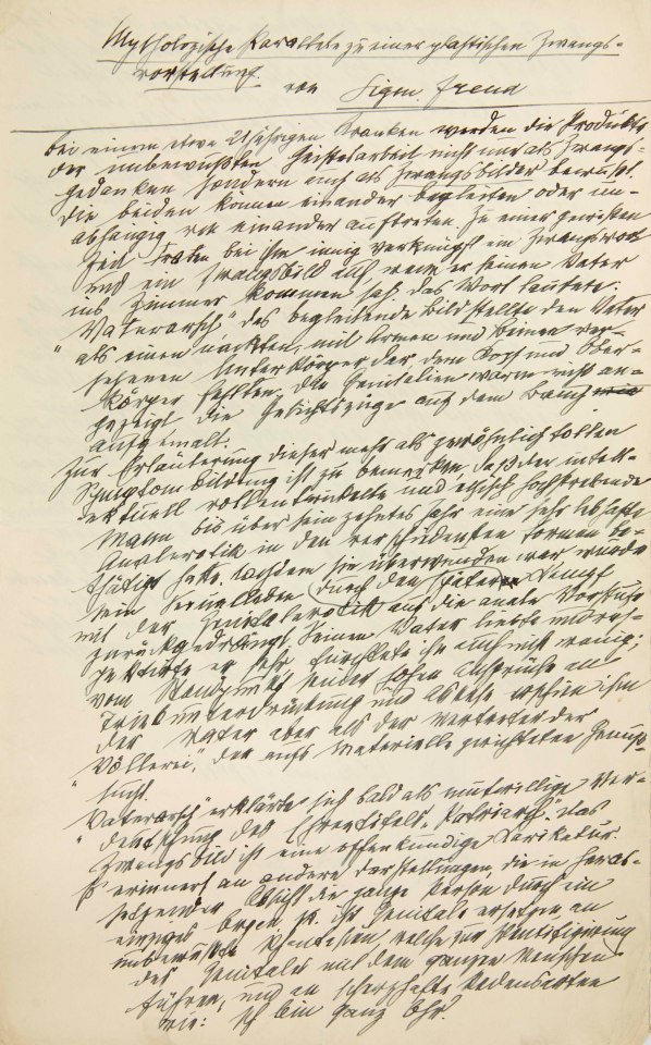 | Freud, Sigmund | 1916-002/1916.01 | Mythologische Parallele zu einer plastischen Zwangsvorstellung | Reinschrift |