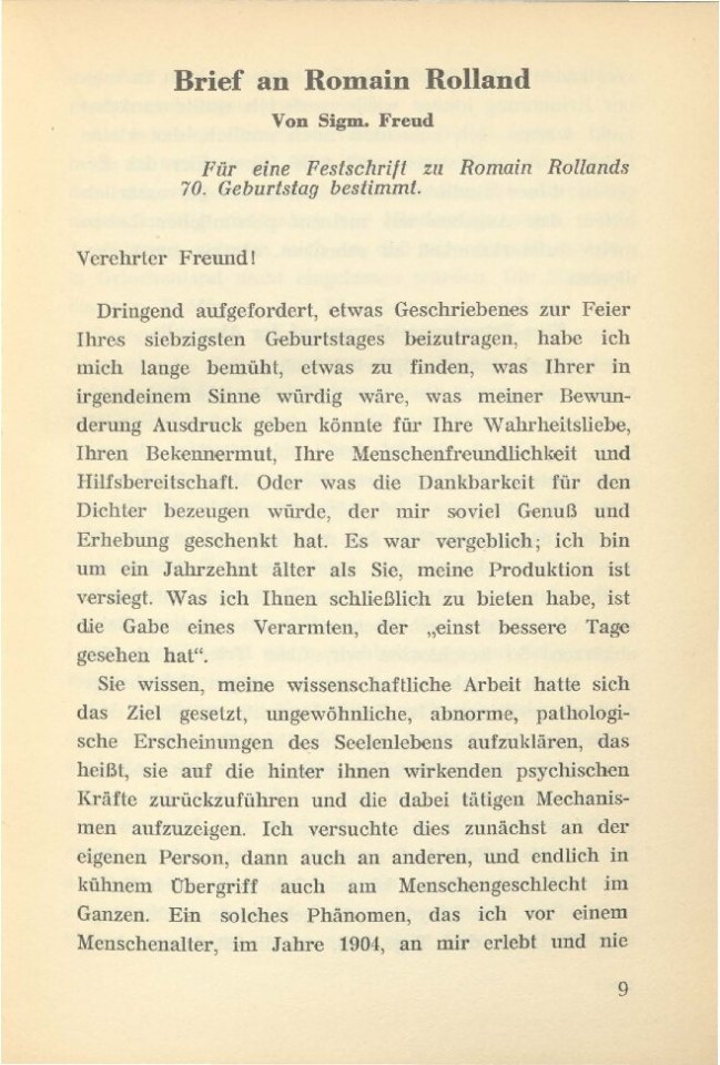 Sigmund Freud an Romain Rolland Brief zum 29.1.1936