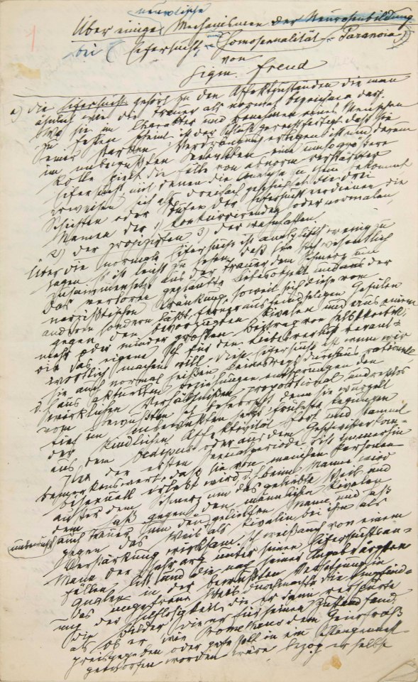| Freud, Sigmund | 1922-002/1921.01 | Über einige neurotische Mechanismen bei Eifersucht, Paranoia und Homosexualität | Reinschrift |