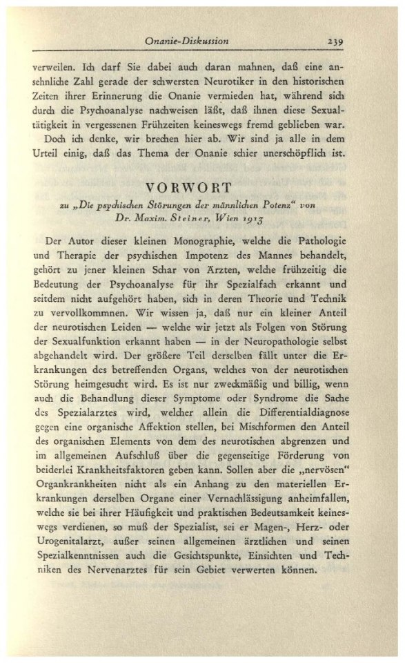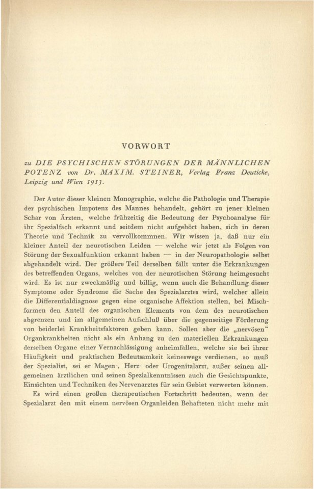 Vorwort [zu: Steiner, Maximilian ›Die psychischen Störungen der männlichen Potenz‹]