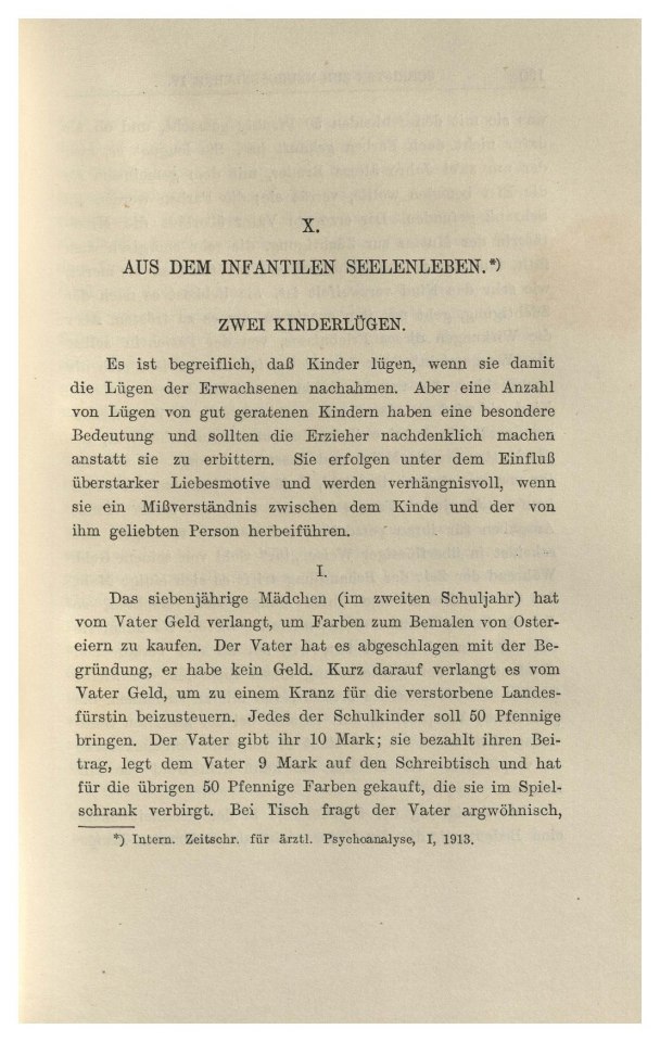 Freud, Sigmund | 1913-008/1918 | 10659 | Zwei Kinderlügen | SKSN 4 | 189–194 | Fertig ✔ | Fertig ✔ | Ganz fertig / zutreffend ✔ | Fehlt ✖ | Fehlt ✖ | Ganz fertig / zutreffend ✔ | ✔ | EB | ✔ | |||