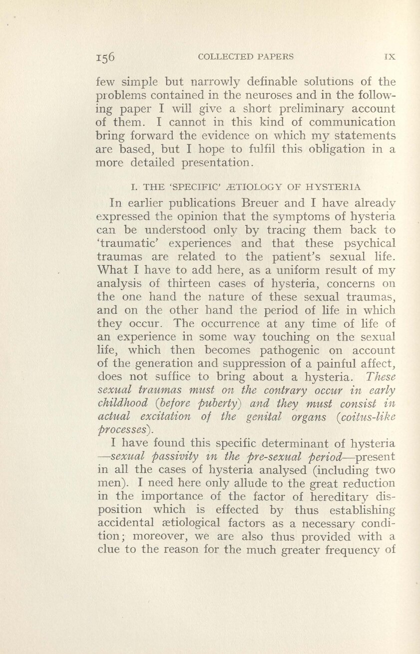 more detailed presentation.1. THE ‘SPECIFIC ZTIOLOGY OF HYSTERIA