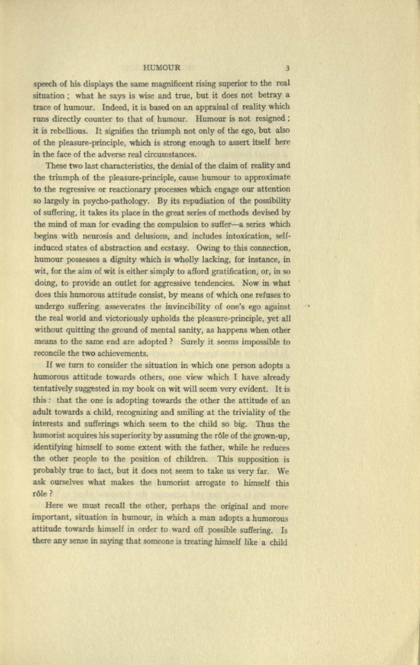 humorist acquires his superiority by assuming the rôle of the grown-up,