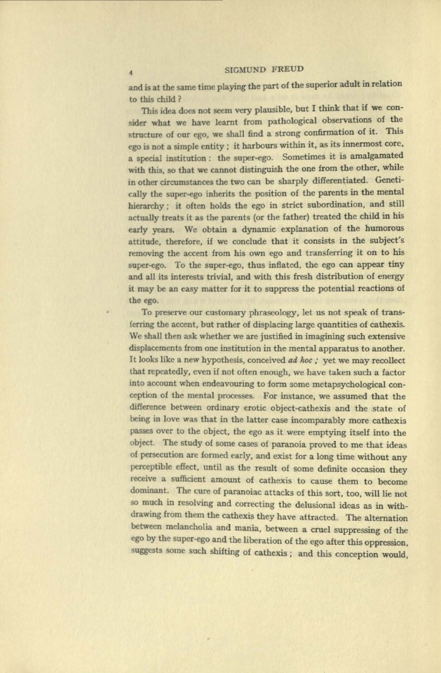 super-ego. To the super-ego, thus inflated, the ego can appear tiny