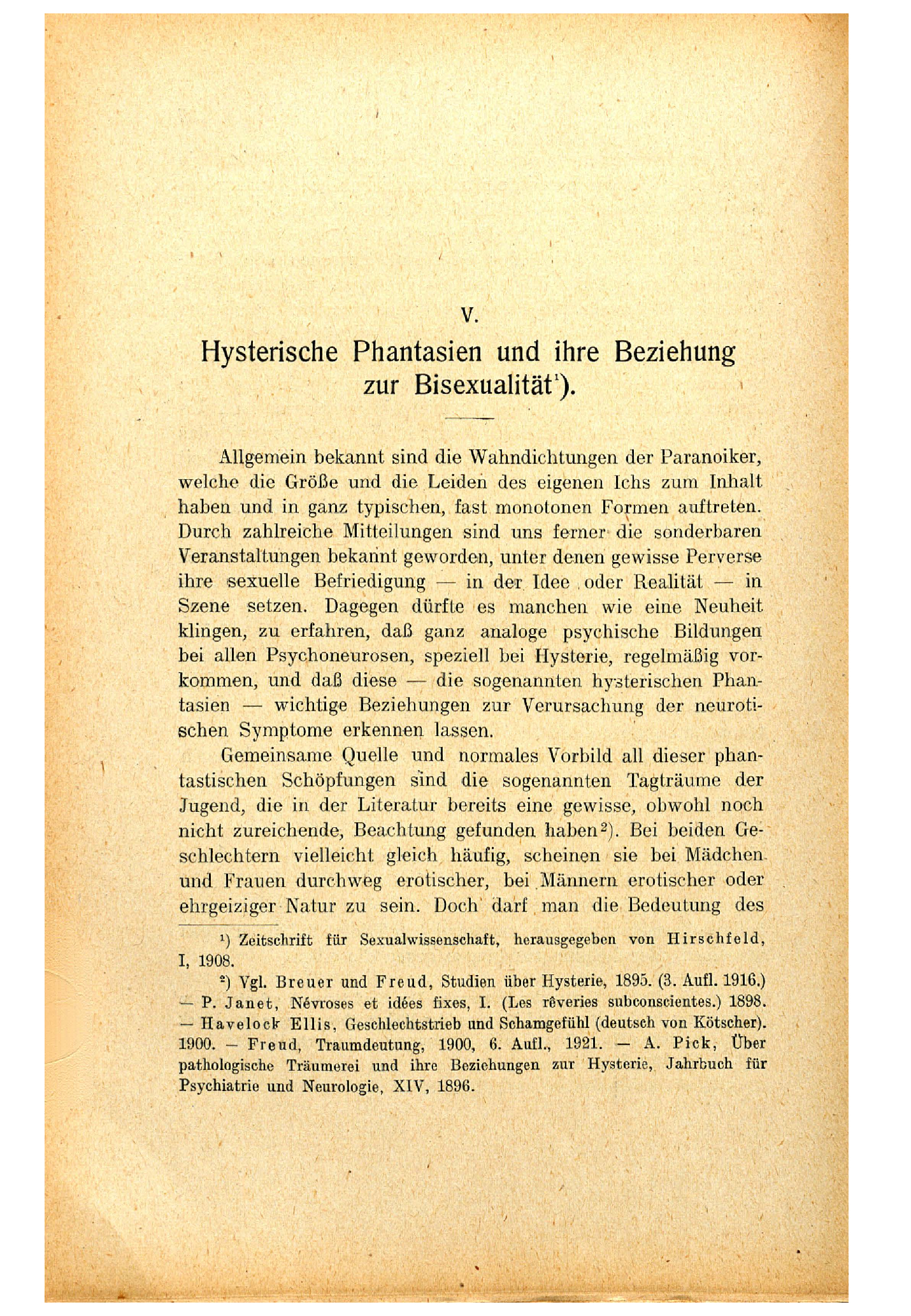 Hysterische Phantasien und ihre Beziehungen zur Bisexualität 1908-001/1921