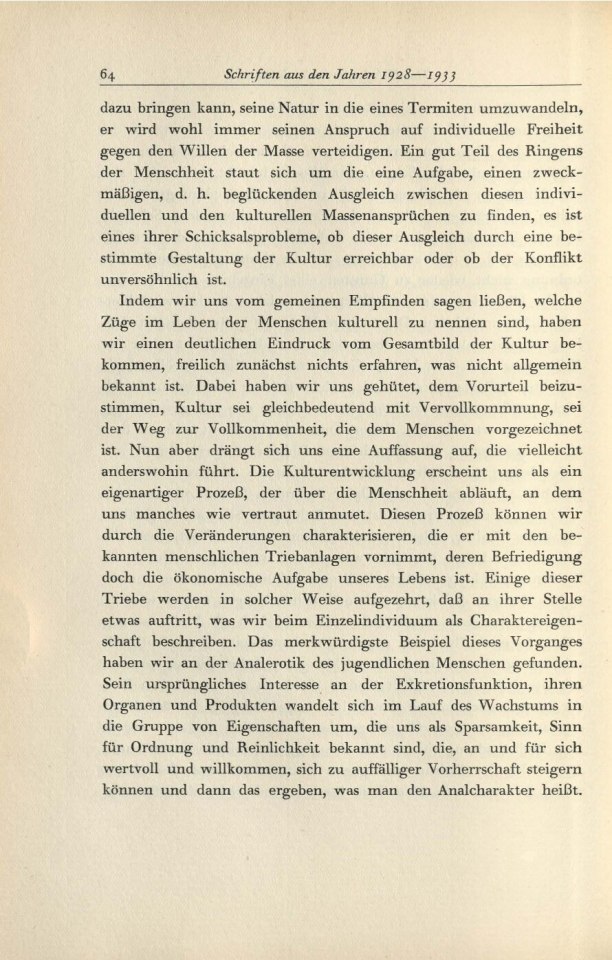 Das Unbehagen in der Kultur/1934 /1934: Das Unbehagen in der KulturTitelI.II.III.IV.V.VI.VII.VIII. S. S. S. S. S. S. S. S. S. S. S. S. S. S. S. Komponente Unterkapitel Art der Manifestation Druckschrift Medientyp Papier Referenztext Nein TEI Export abgeschlossen Nein Format Buch Schriftart Druckschrift Sprache Deutsch Zustand Unbeschädigt Original/Kopie Original Archiv, Bibliothek IPU Weiterführende Informationen Publikationsart Text in Werkausgabe AutorInnen Freud, Sigmund