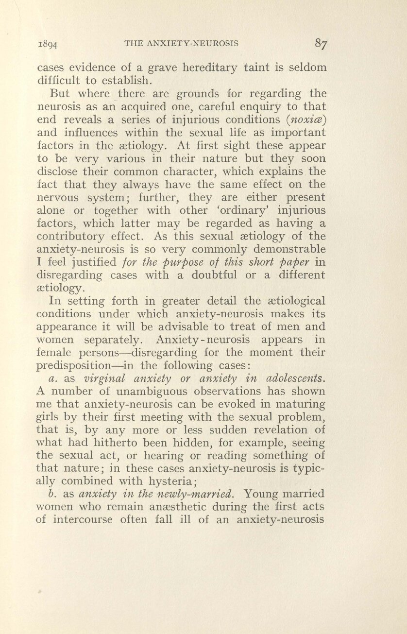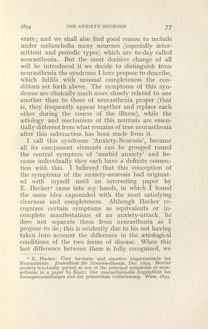 after this subtraction has been made from it.I call this syndrome ‘“Anxiety-Neurosis’, because