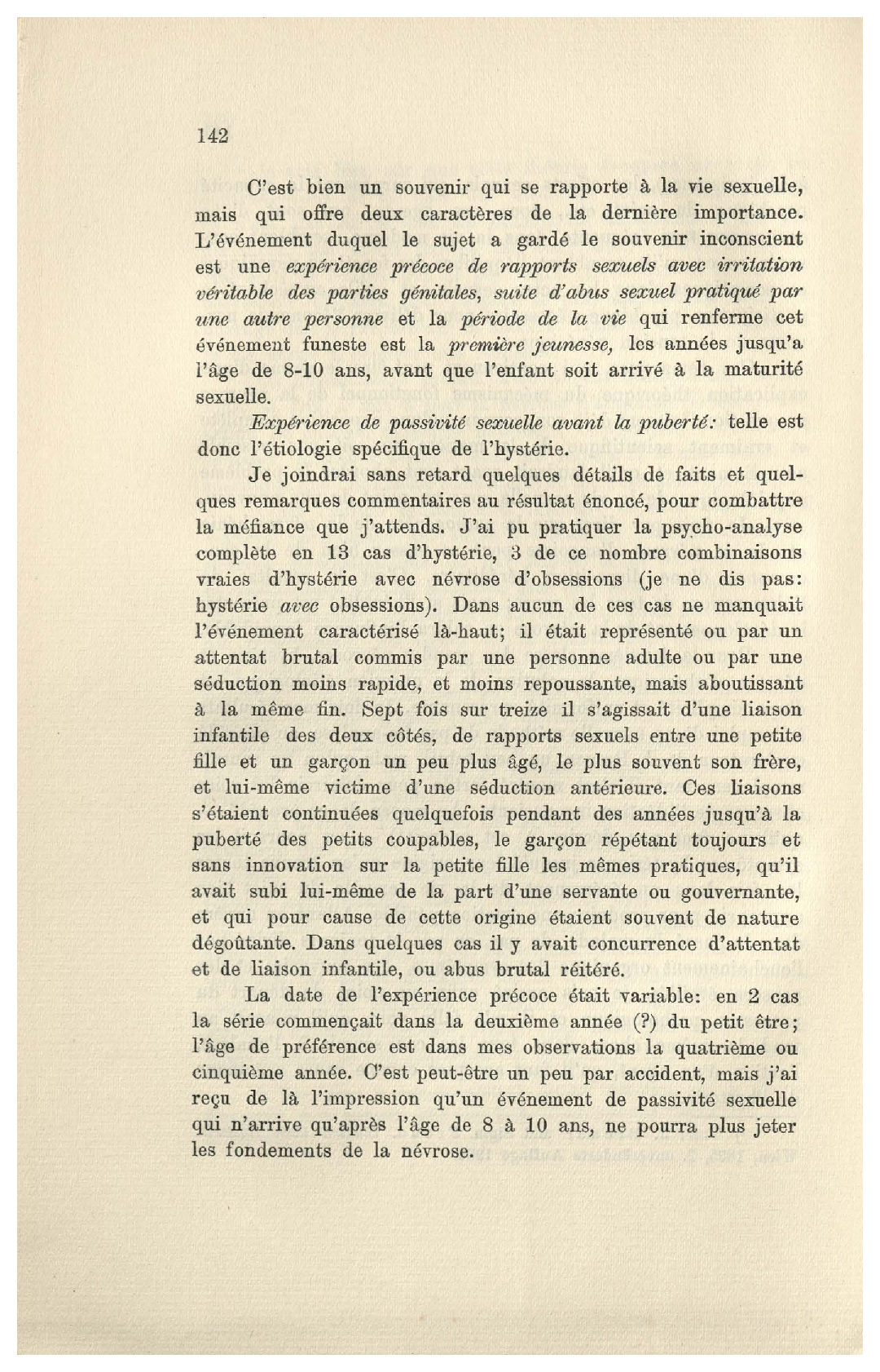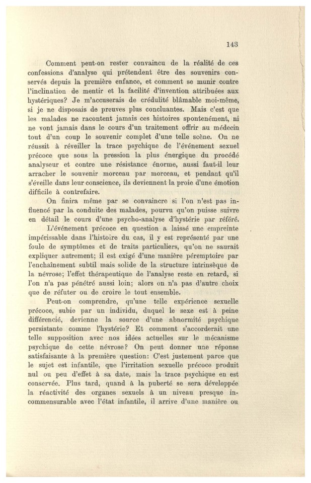 spécifique de l’hystérie un souvenir d’expérience sexuelle précoce,
