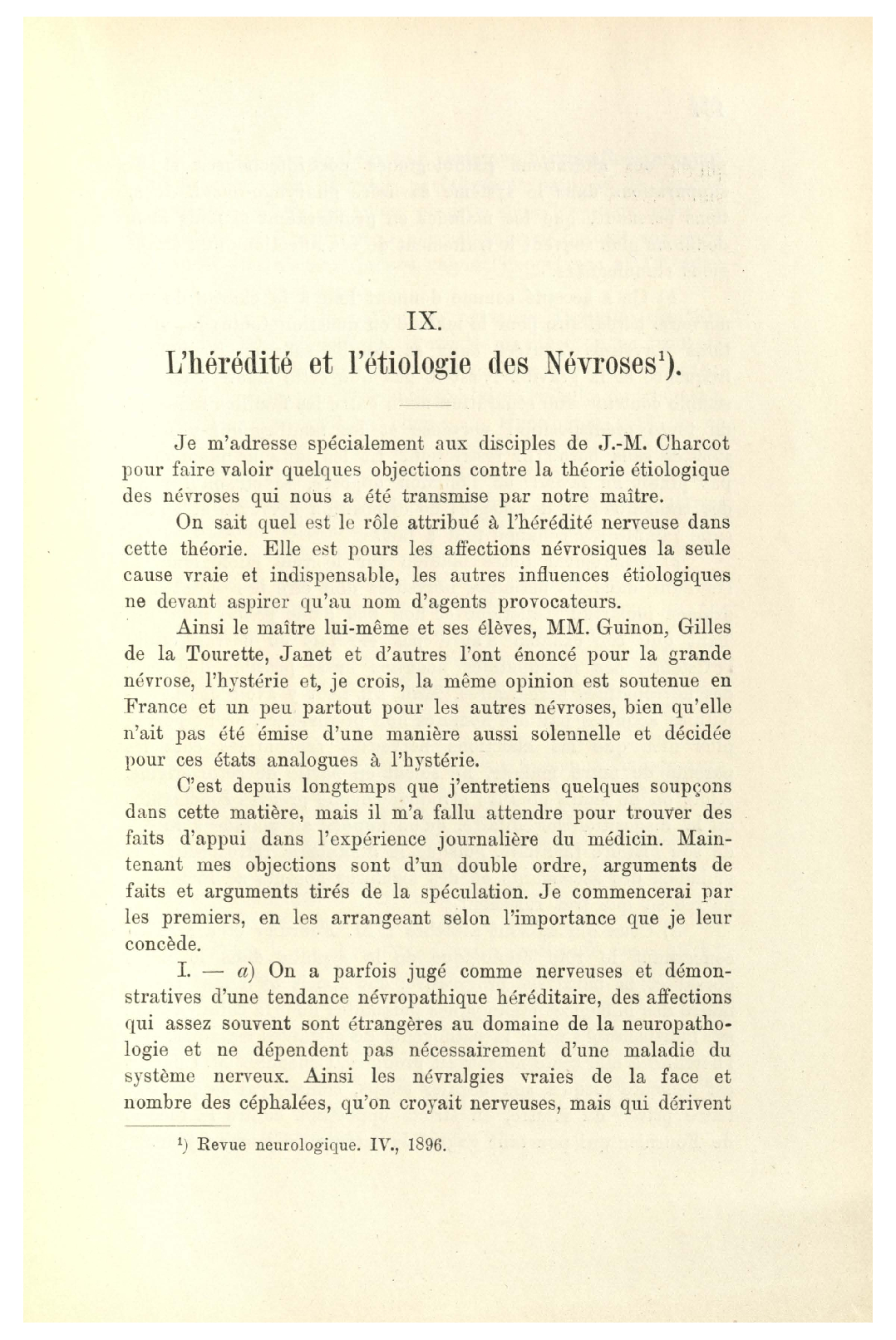 I/hérédité et l’étiologie des Névroses).Je m'adresse spécialement aux disciples de J.-M. Charcot