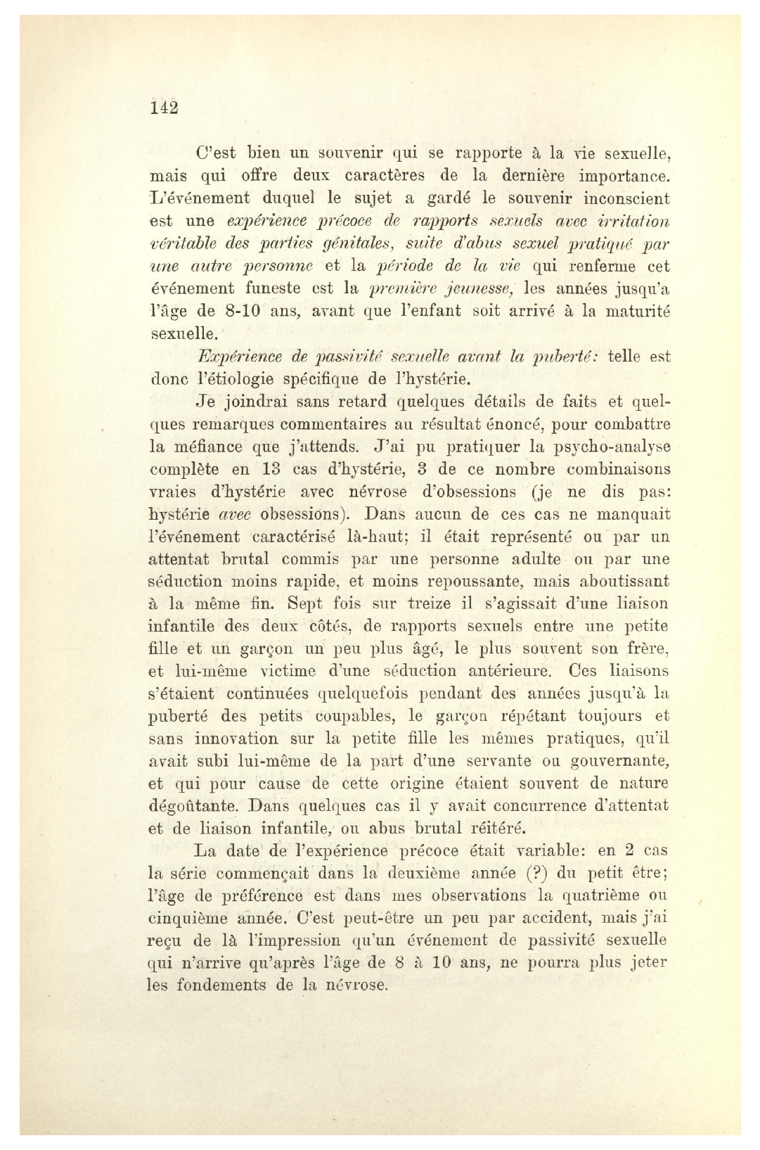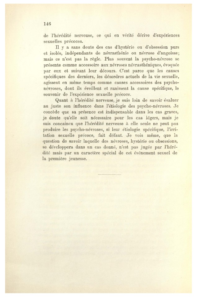 souvenir de l’expérience sexuelle précoce.Quant à l'hérédité nerveuse, je suis loin de savoir évaluer