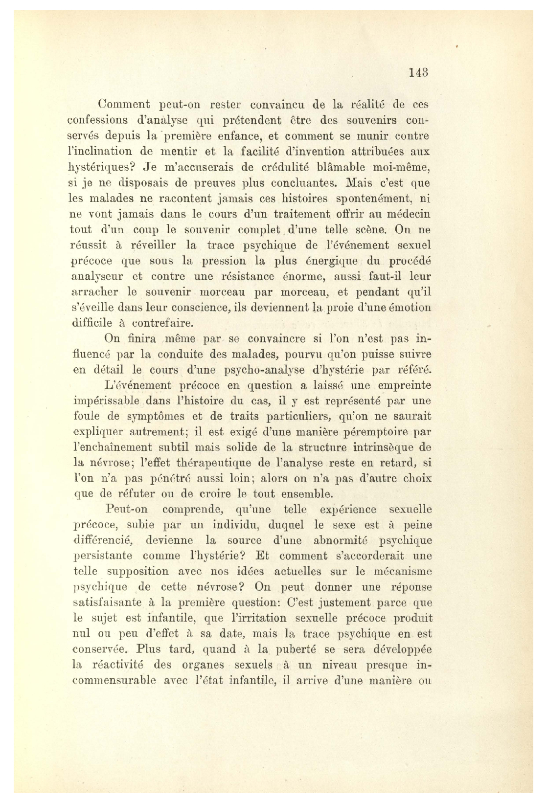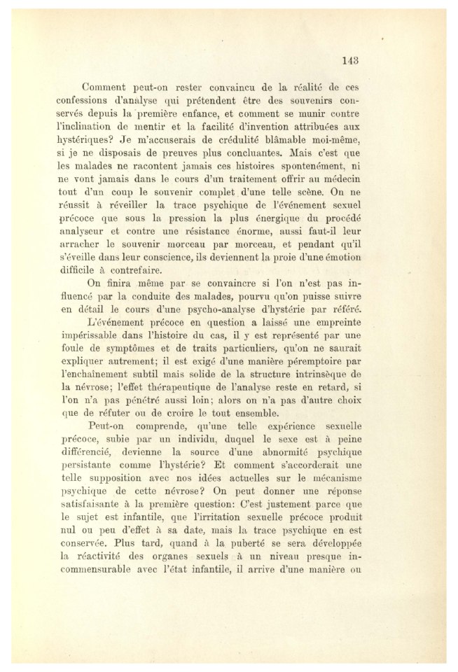 spécifique de l’hystérie un souvenir d’expérience sexuelle précoce,