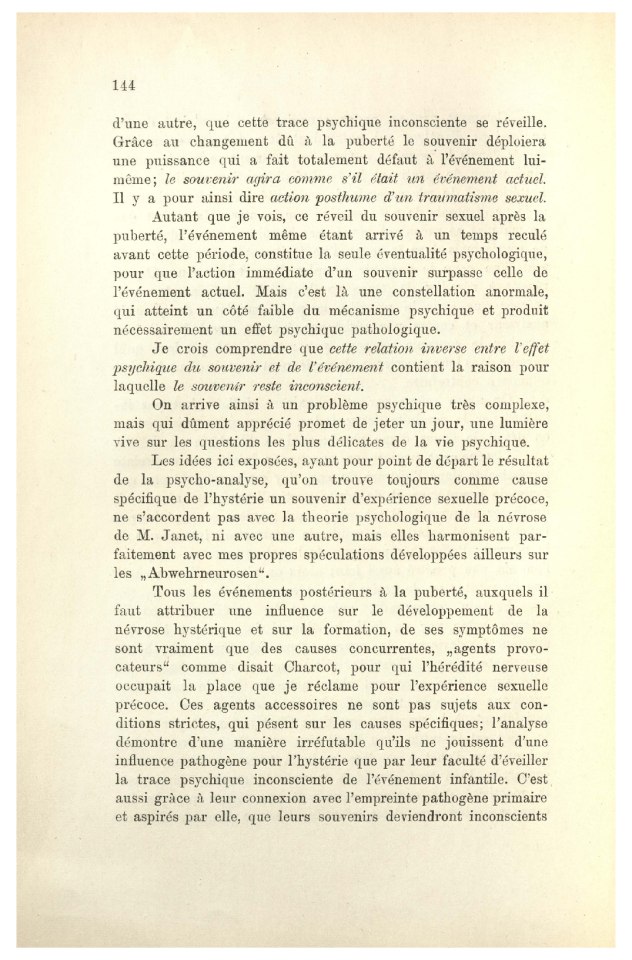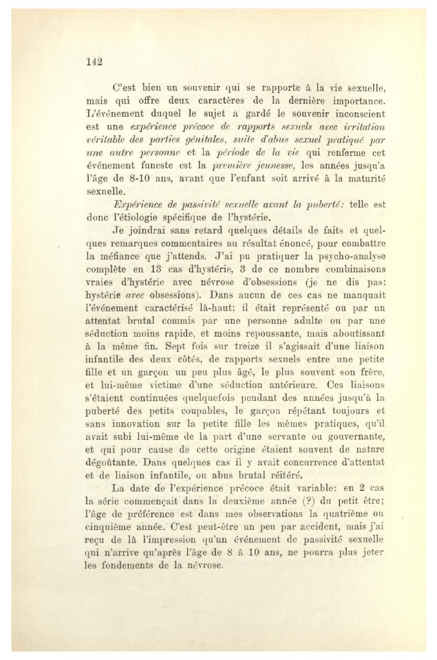 les , Abwehrneurosen“.Tous les événements postćrieurs & la puberté, auxquels il