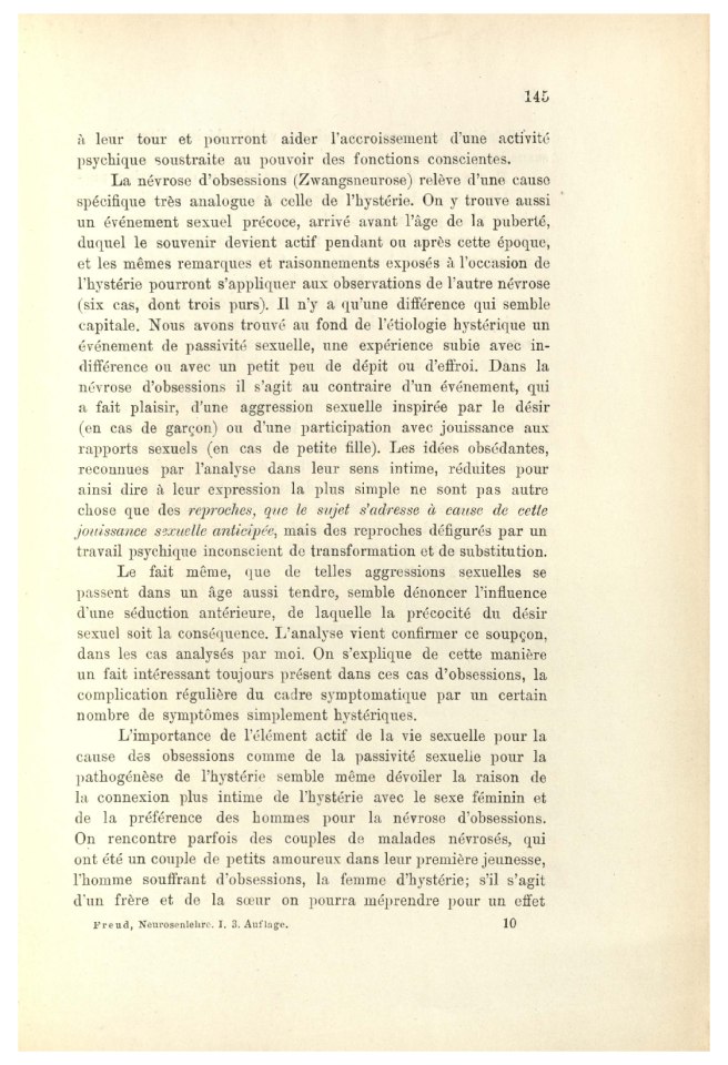 psychique soustraite au pouvoir des fonctions conscientes.La névrose d’obsessions (Zwangsneurose) relève d’une cause
