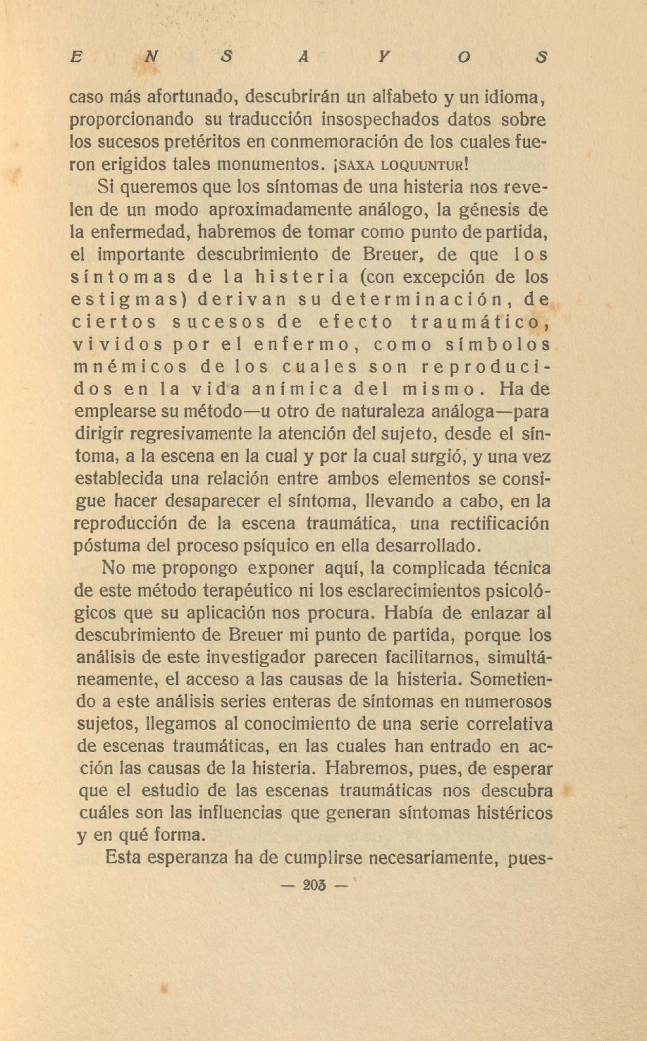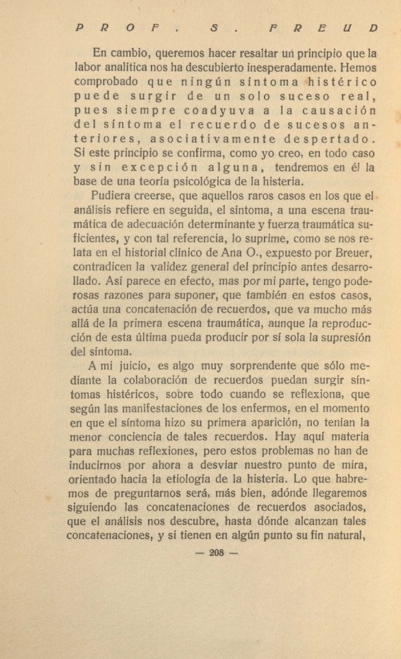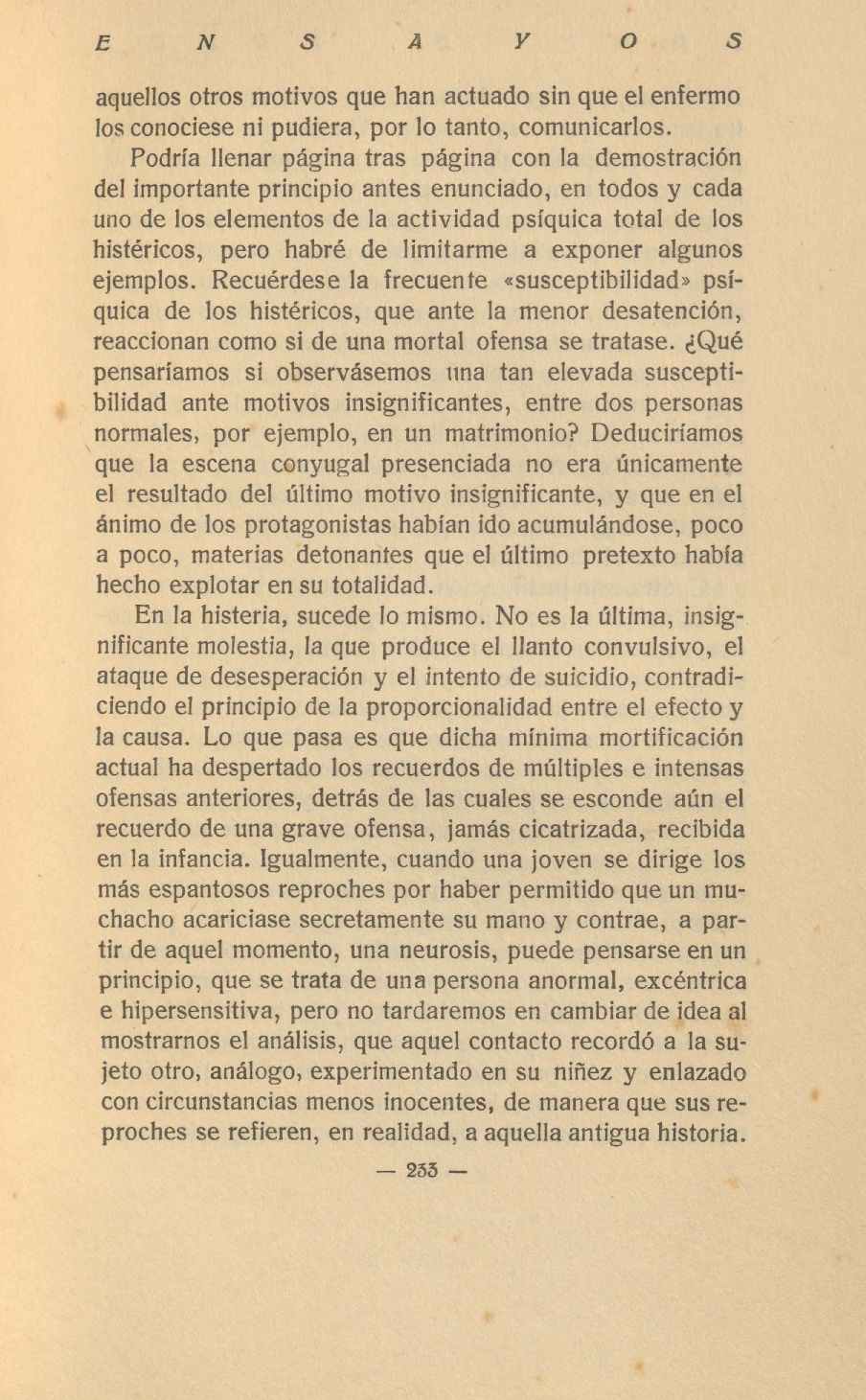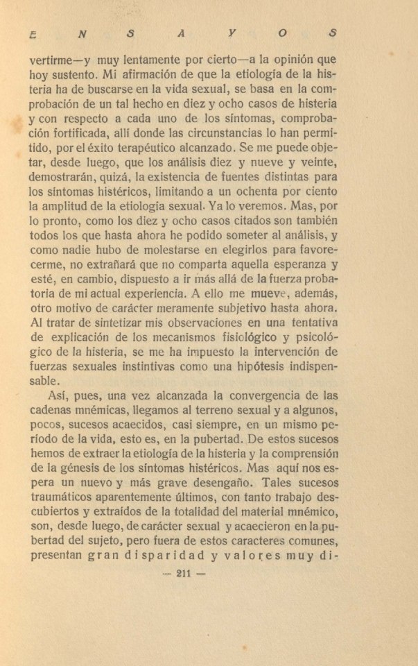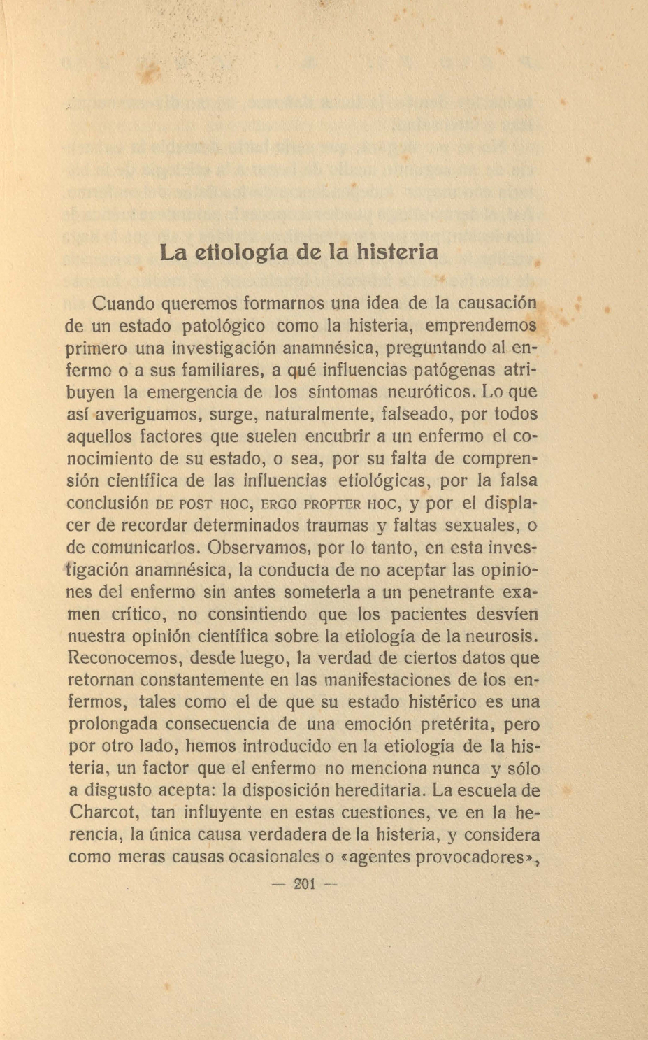 nuestra iniciada comprensiôn de la etiologia de la histeria.