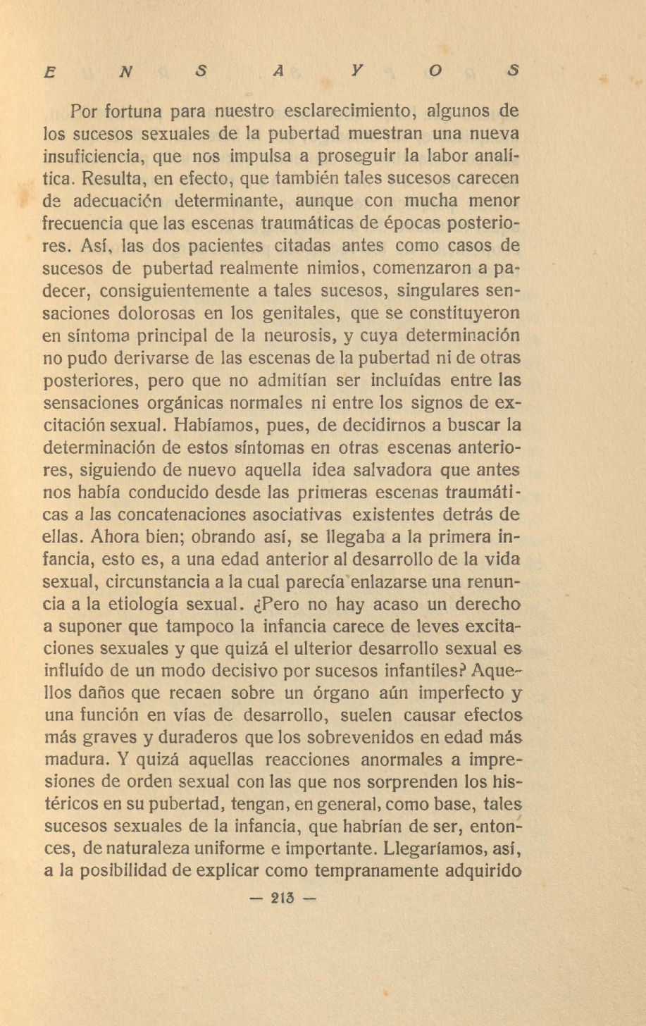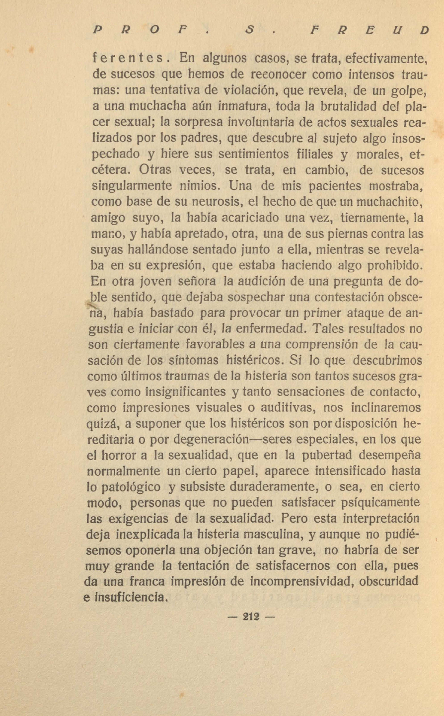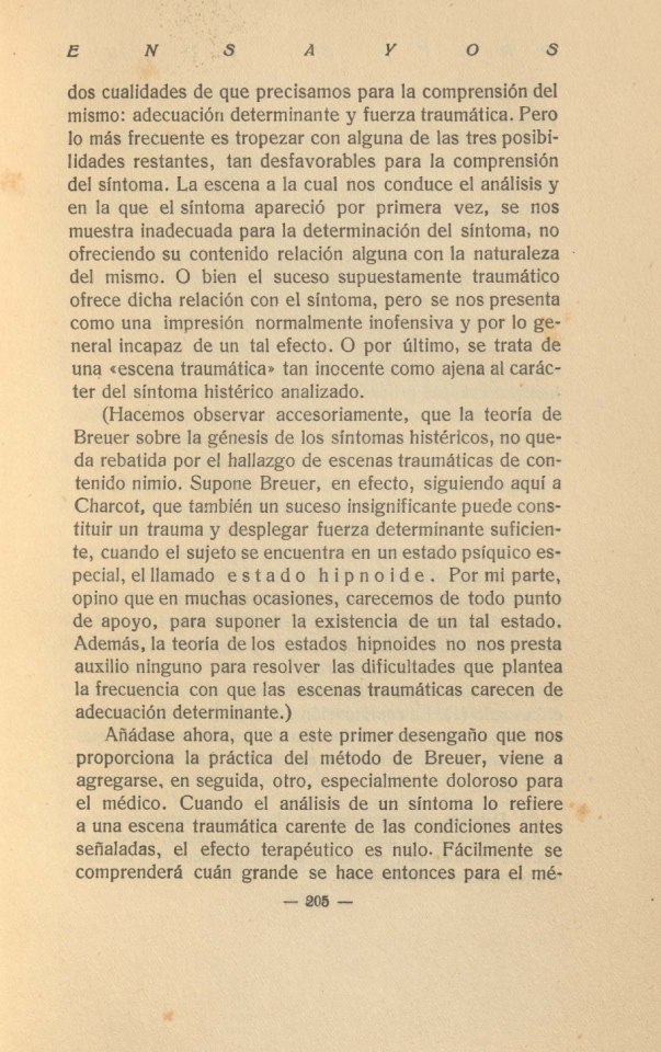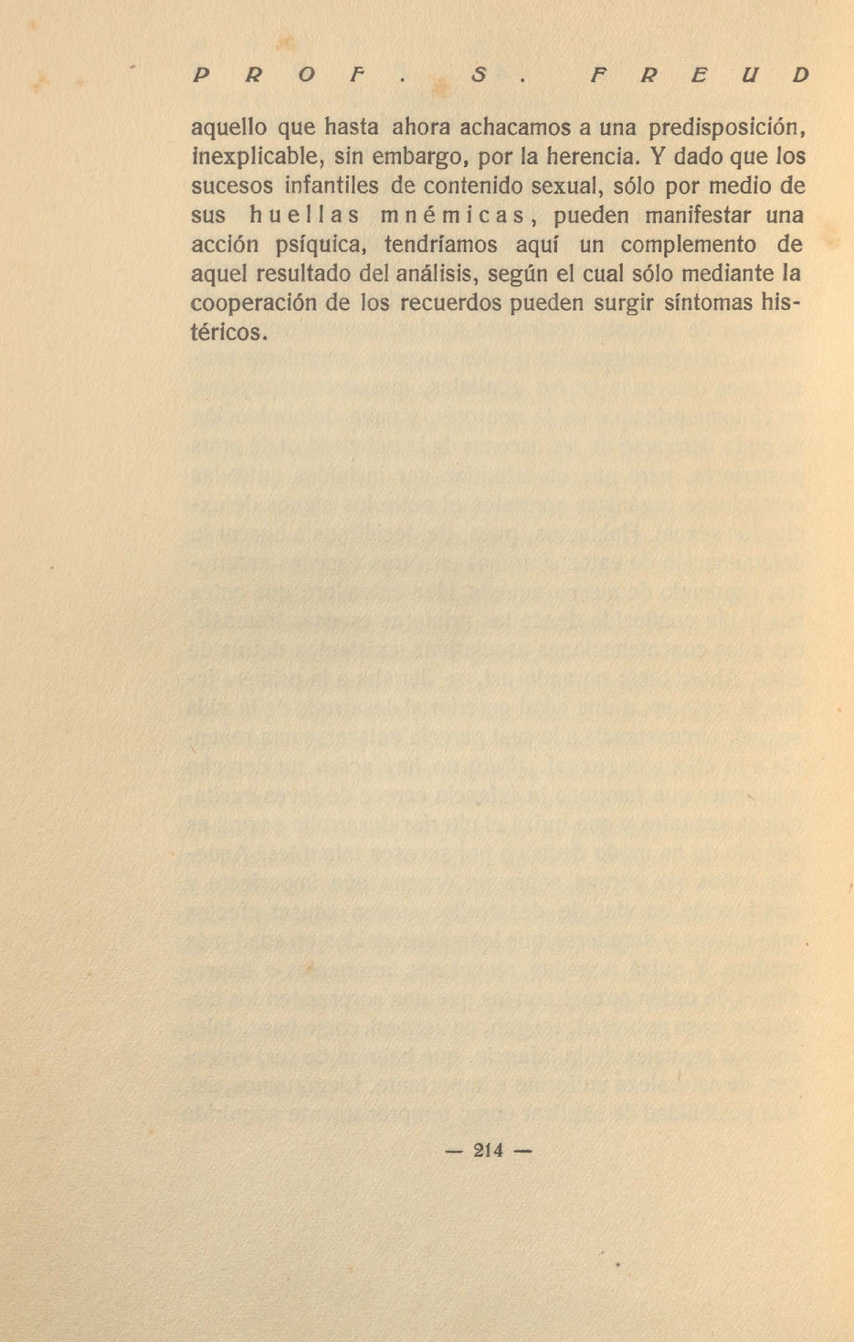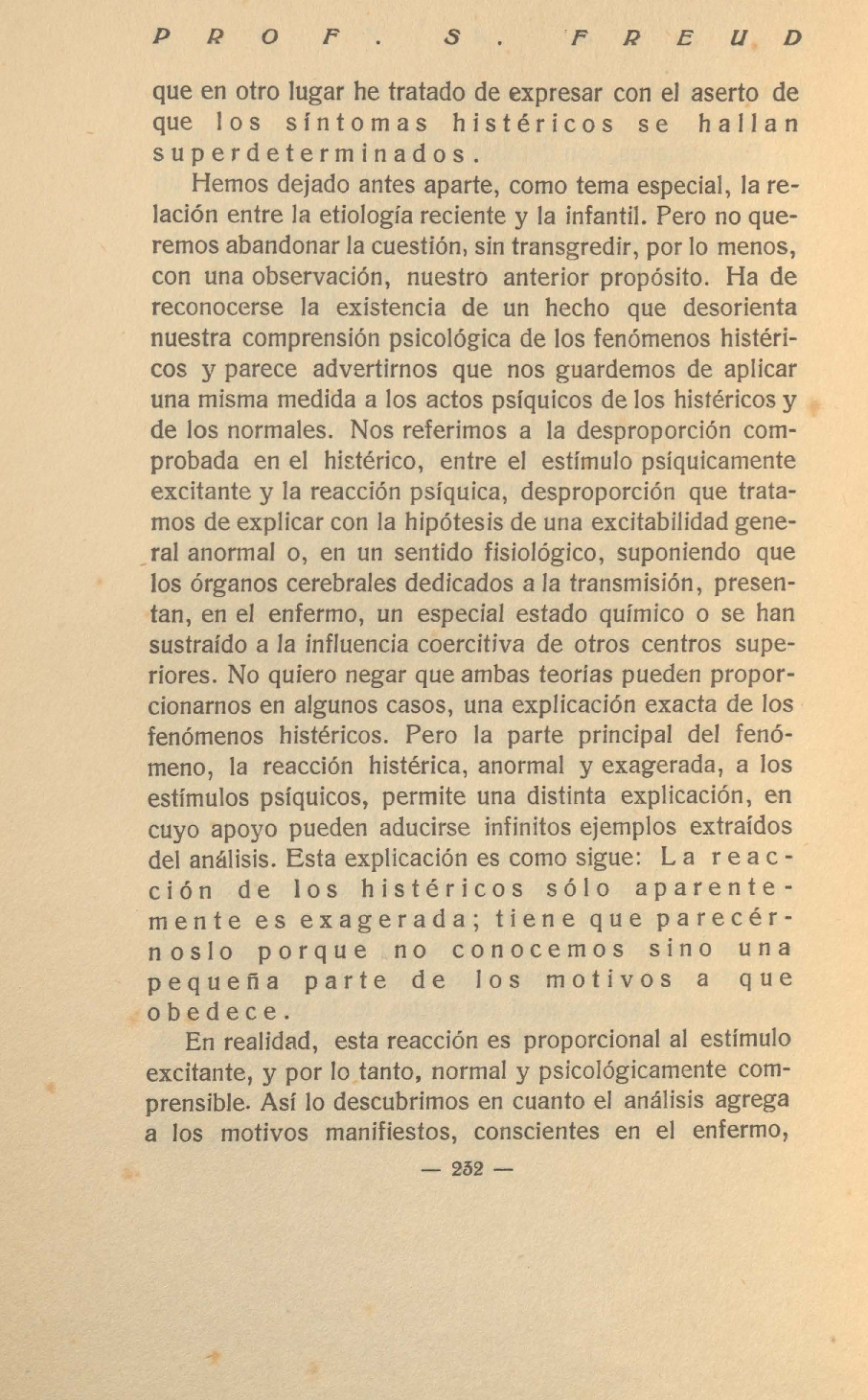 nuestra iniciada comprensiôn de la etiologia de la histeria.