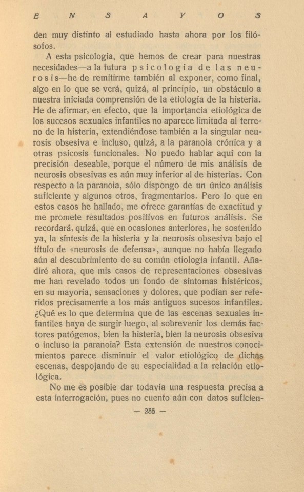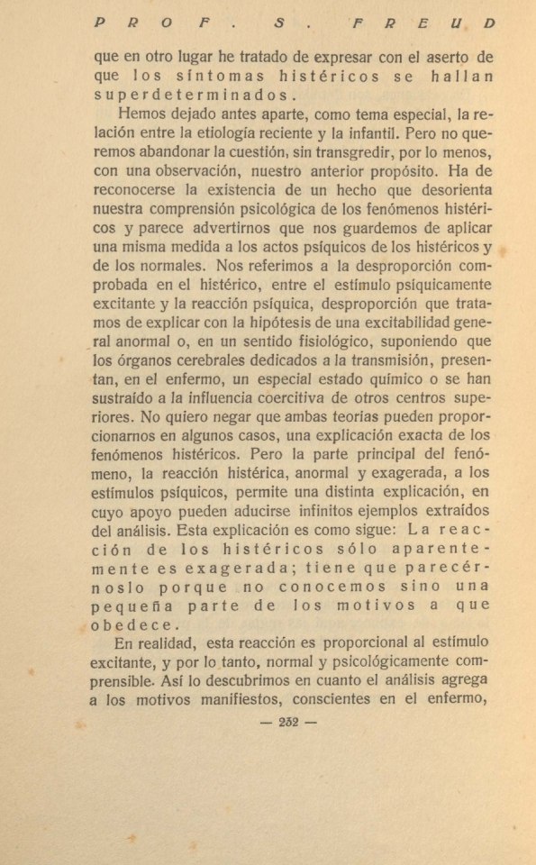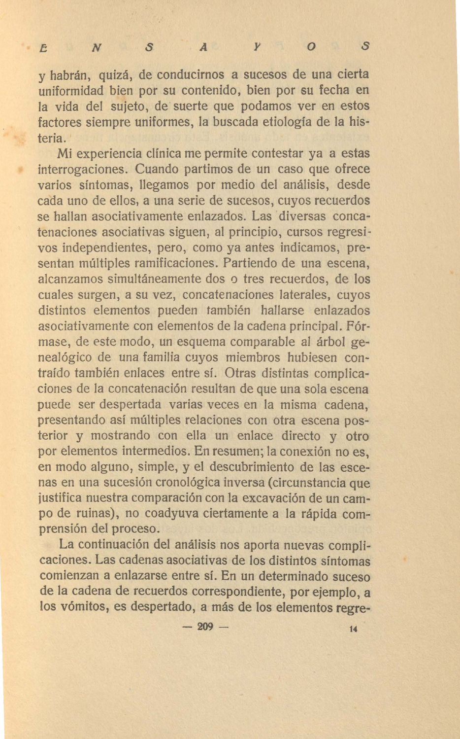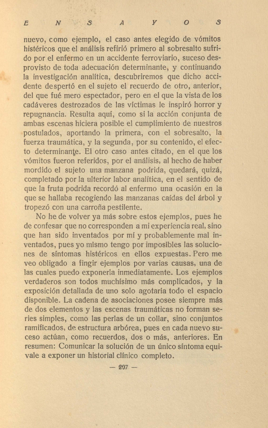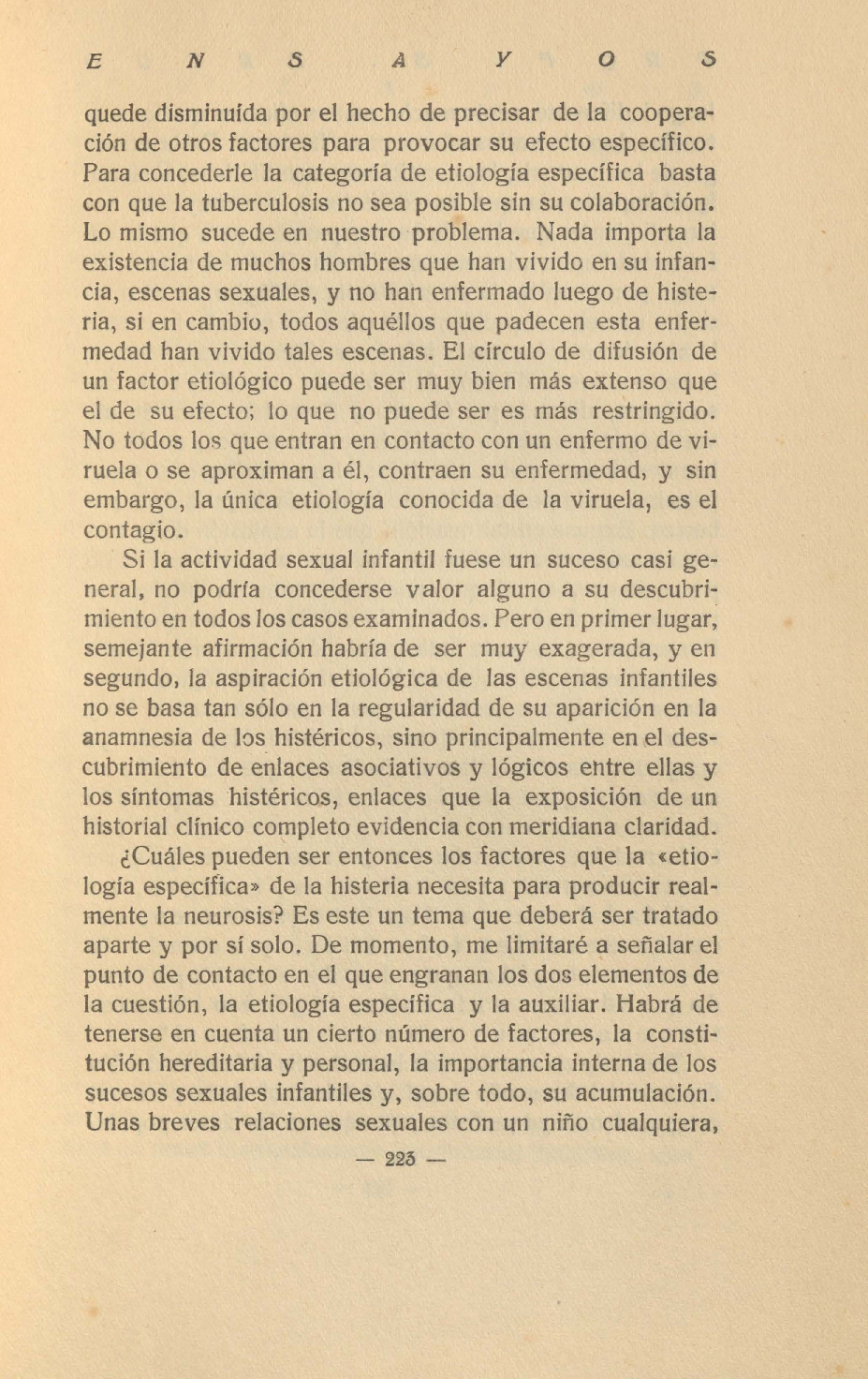 nuestra iniciada comprensiôn de la etiologia de la histeria.