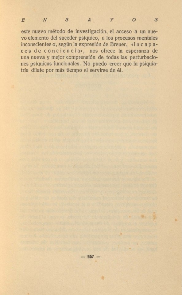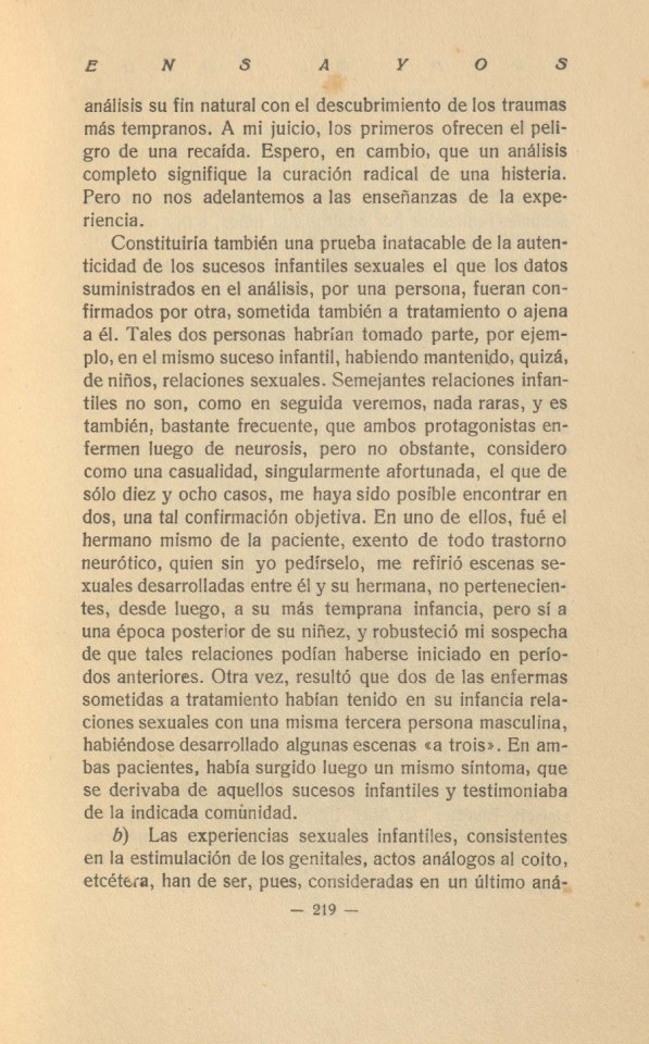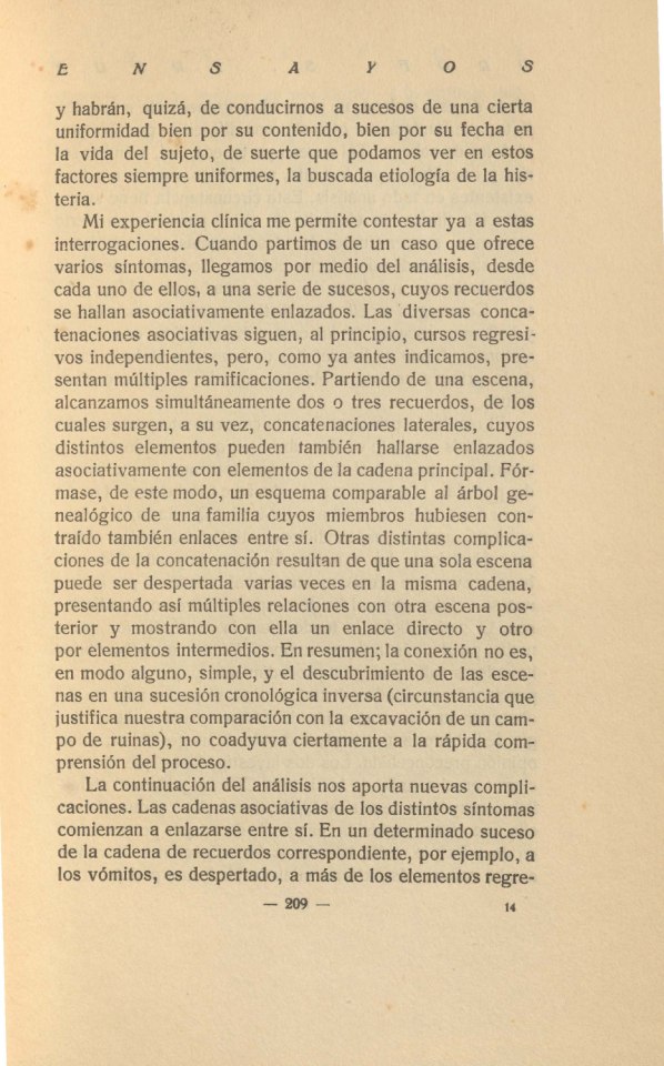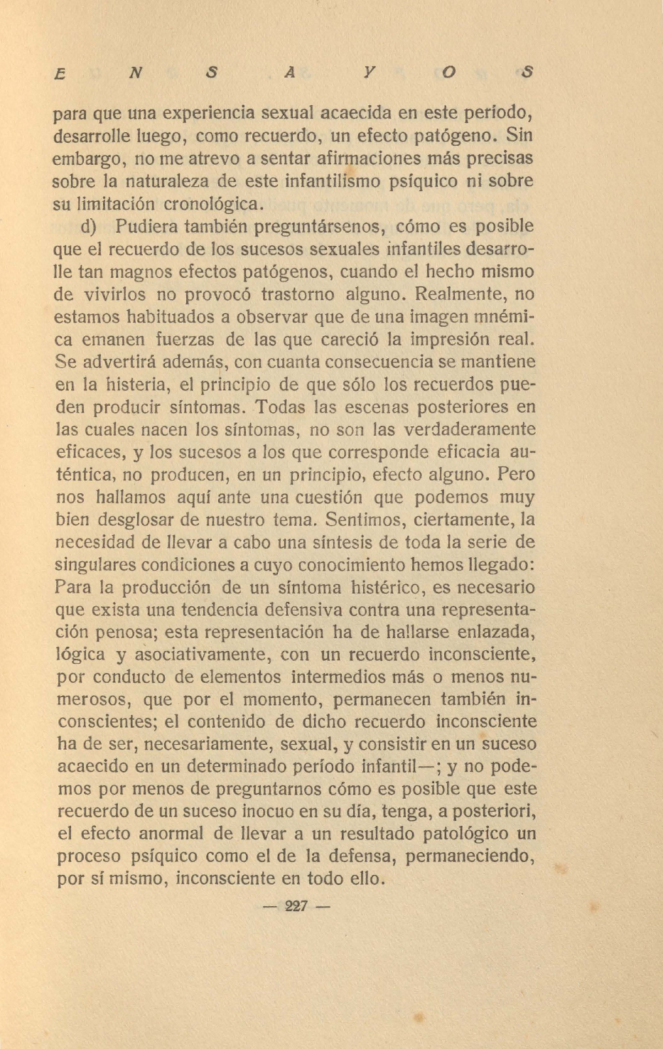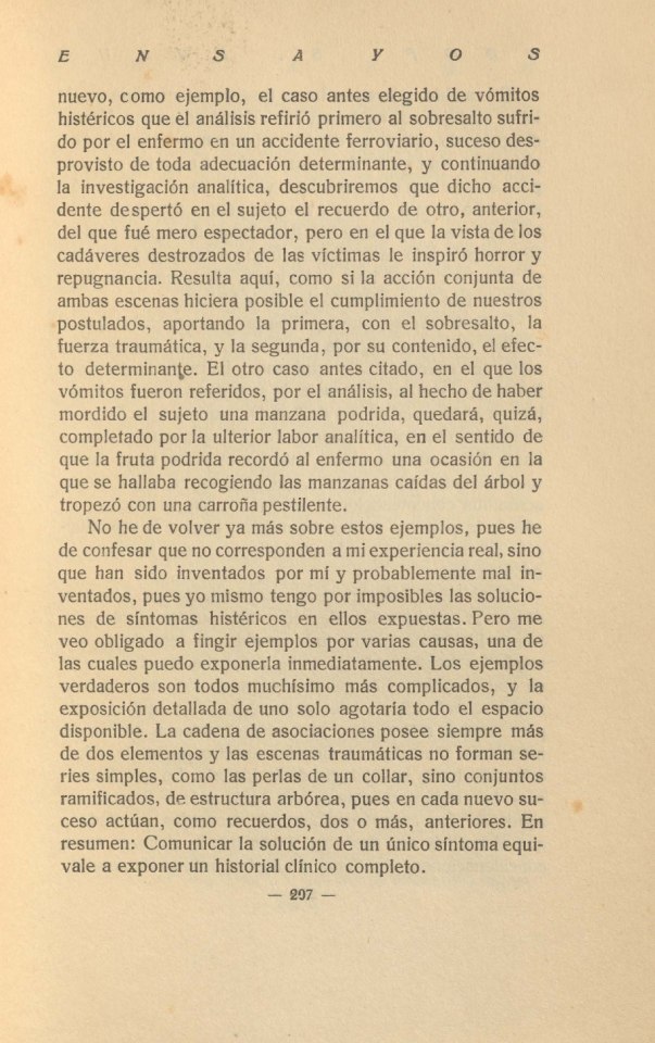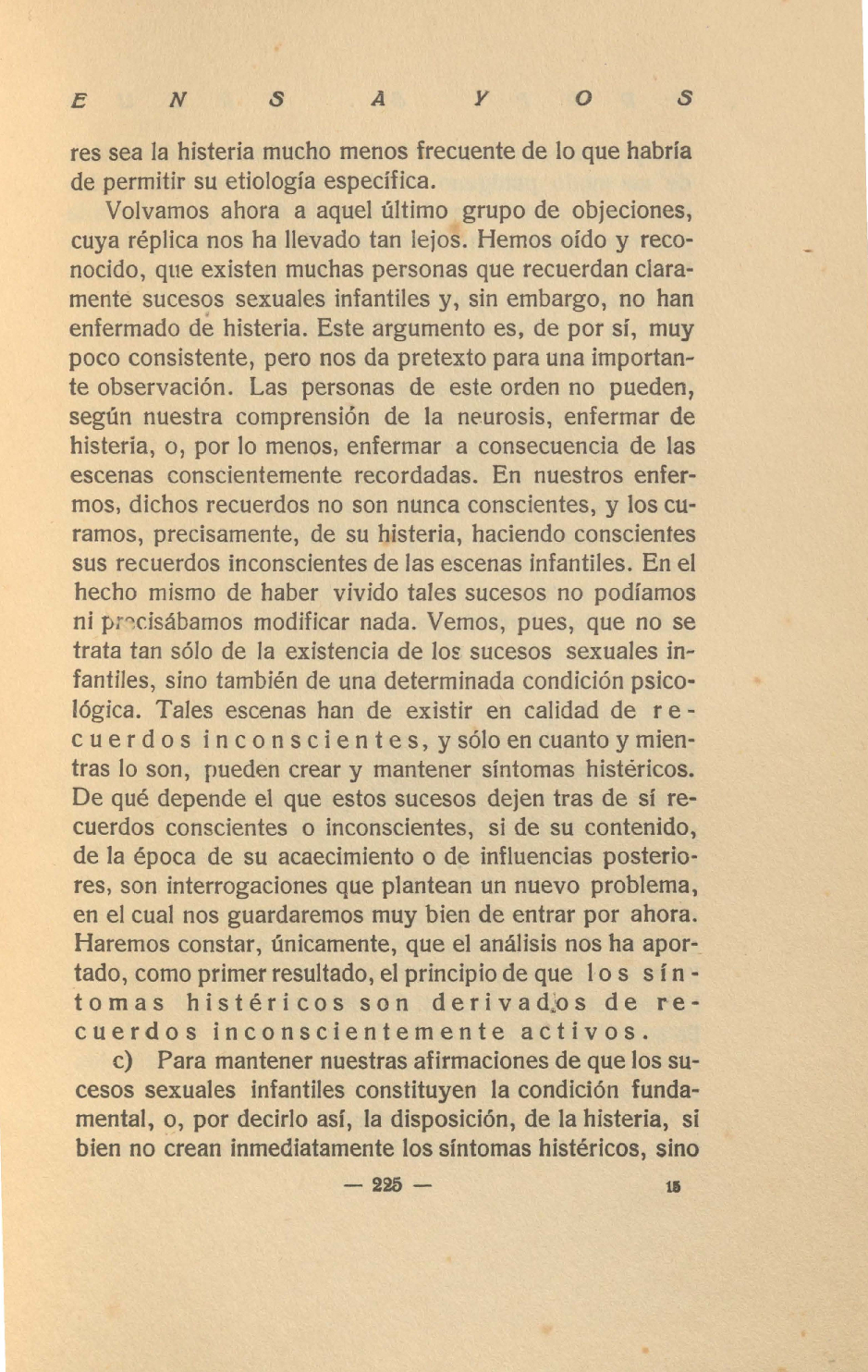nuestra iniciada comprensiôn de la etiologia de la histeria.